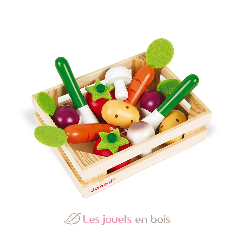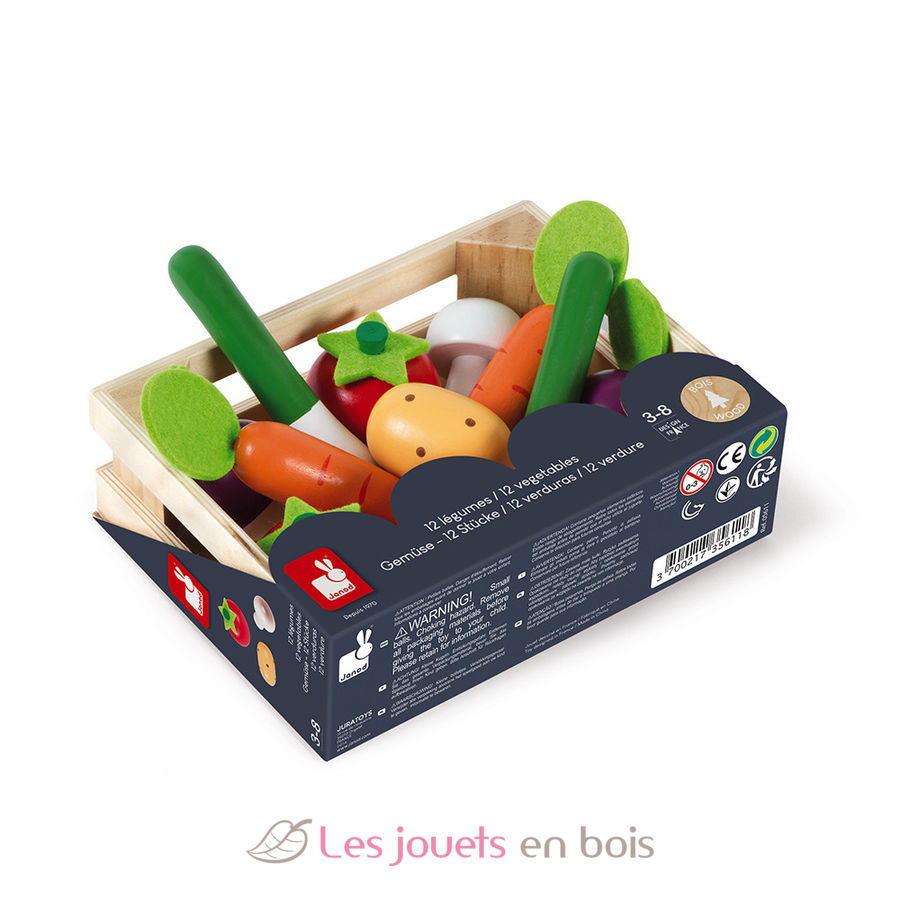 Mit dieser Kiste 12 Gemüse Holz, bereiten Sie Ihre Tochter leckere Salate für ihre Puppen ... Ideal mit einer Essecke (ref: 06537) und eine Küche. Ein hölzernes Spielzeug Spaß und dekorativ. Gemüse Kiste aus Holz Janod Marke. Ref. 05611