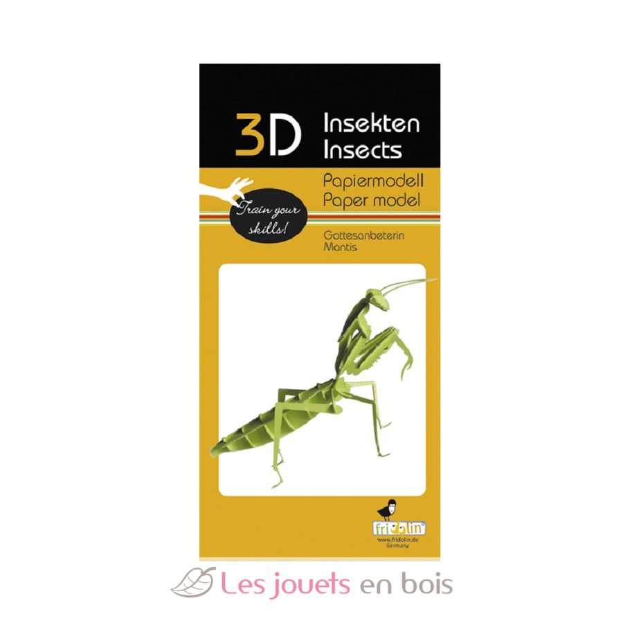 3D Papiermodell Gottesanbeterin. Maße aufgebaut: 11 x 7 x 4 cm.