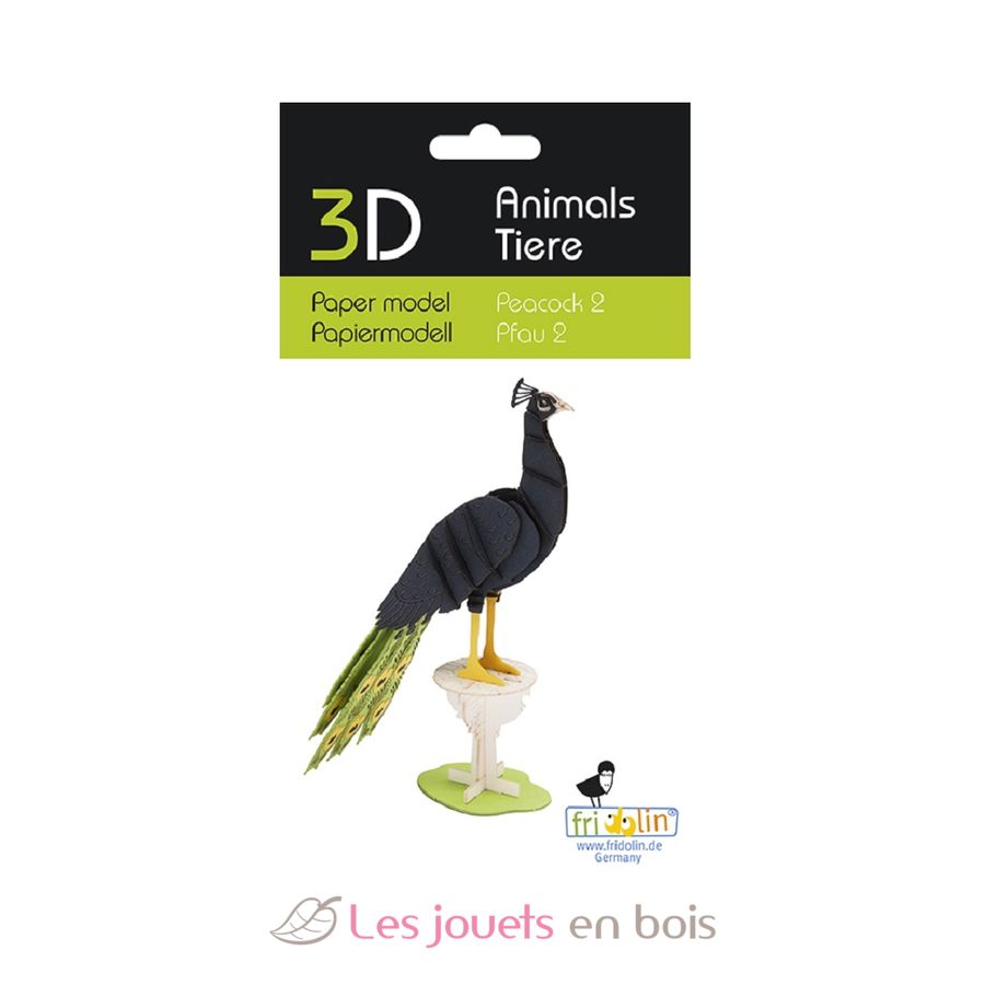 3D Papiermodell Pfau. Maße aufgebaut: 5 x 13 x 8 cm.