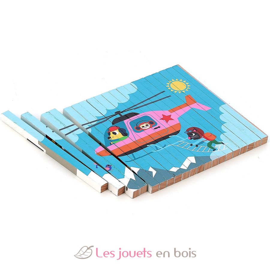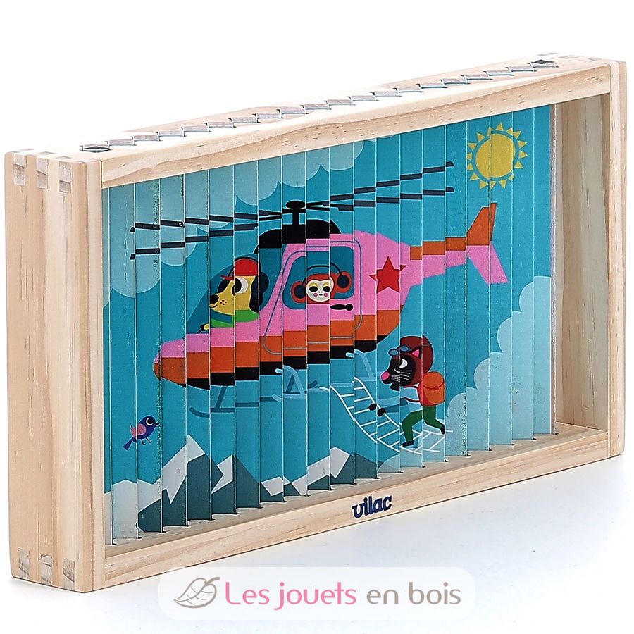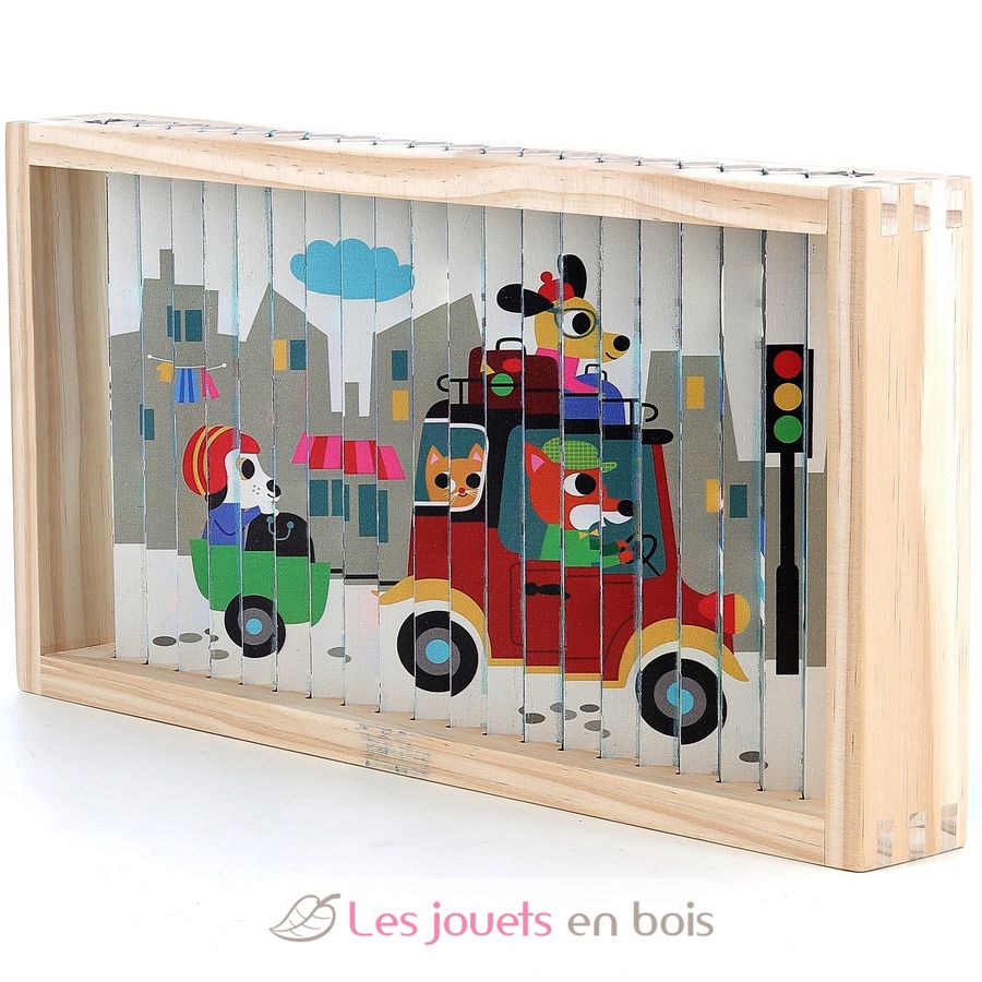 Dieses Puzzle bietet Kindern ab 5 Jahren ein einzigartiges Spielerlebnis. Dank der Holzstäbe erscheinen je nach Blickwinkel 4 verschiedene Bilder. Das clevere und innovative Puzzle enthält einen Marker zur Orientierung. Ein perfektes Spiel, um die Neugier Ihres Kindes zu wecken!