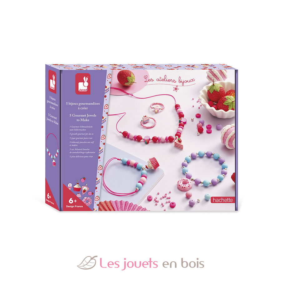 Entdecken Sie das Kreativ-Set "5 Gourmet-Schmuckstücke zum Selbermachen" von Janod, eine kreative Aktivität für Kinder ab 6 Jahren.