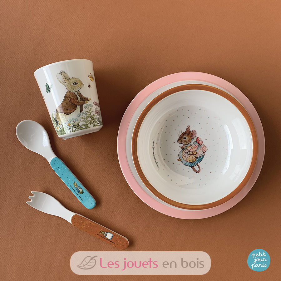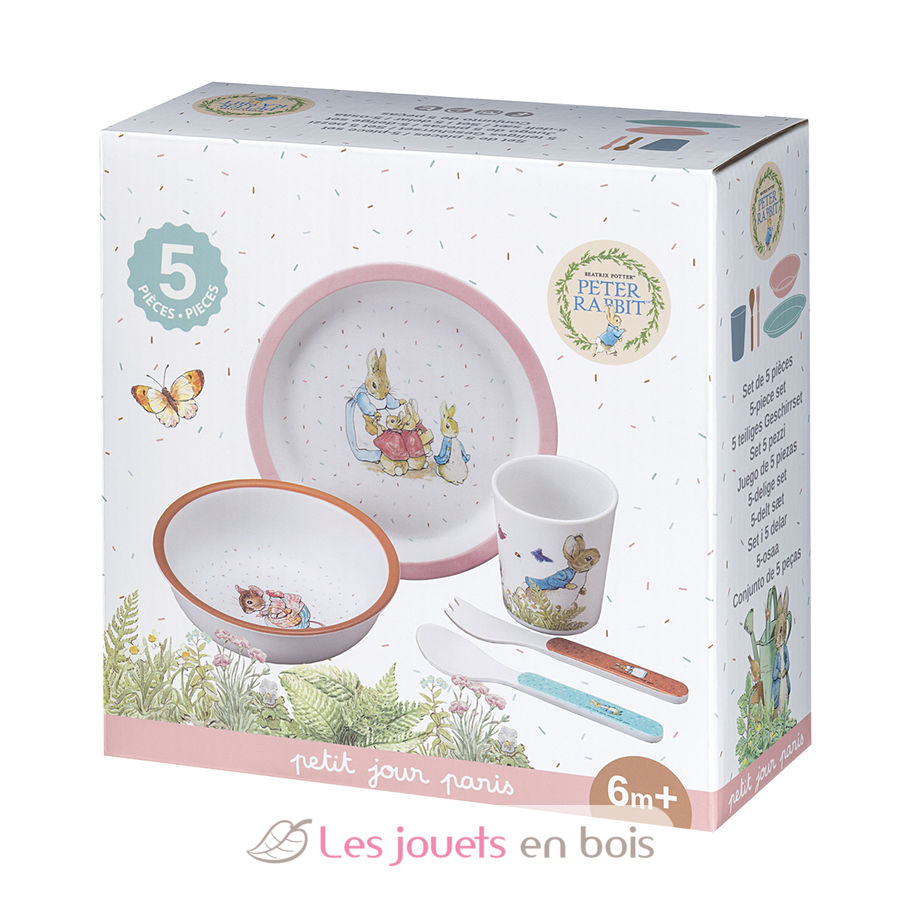 5 teiliges Geschirrset Kaninchen blau, ein Geschirr für Kinder der Marke Petit Jour.