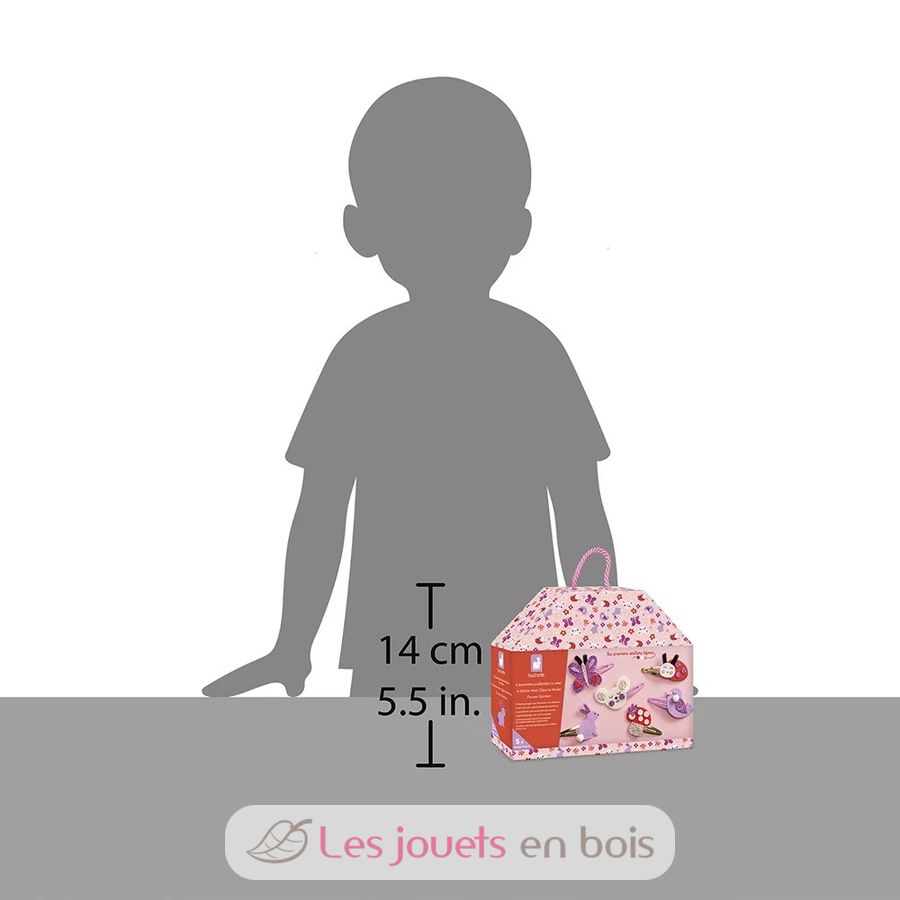 Entdecken Sie das Kreativ-Set "6 Flower Garden Haarspangen zum Erstellen" von Janod, eine kreative Aktivität für Kinder ab 5 Jahren.