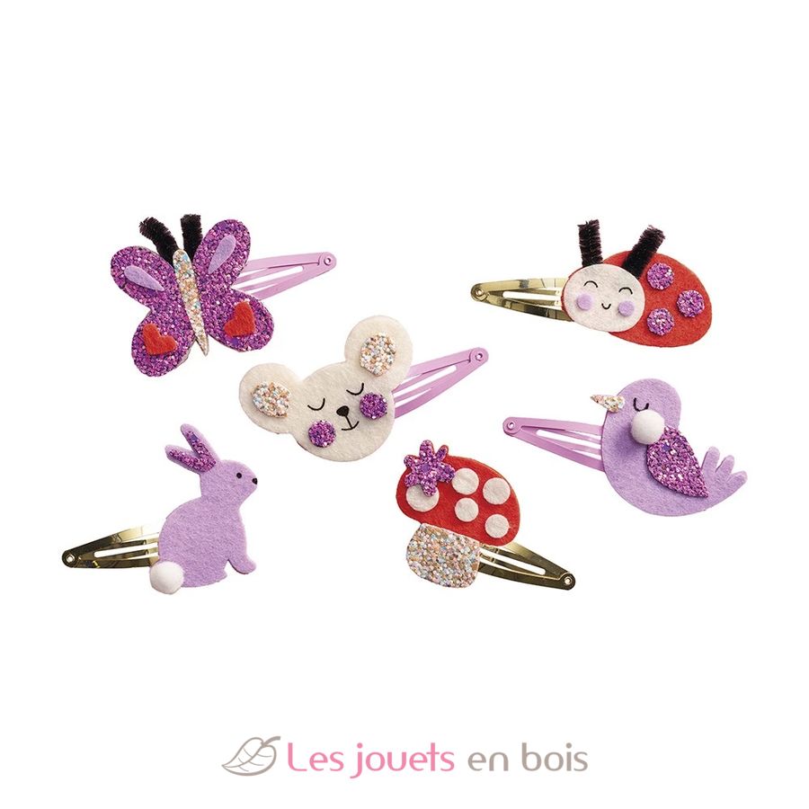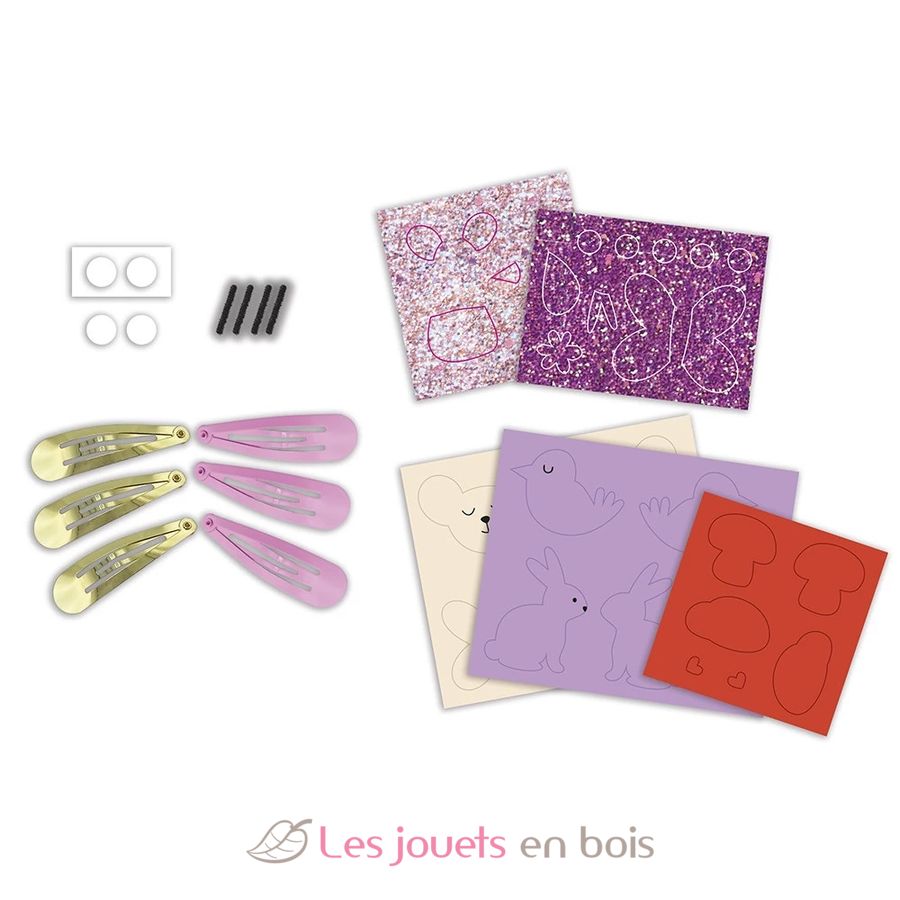 Verleihe deiner Frisur einen floralen Touch mit diesem Kreativset, mit dem du 6 Glitzerspangen zum Thema Garten herstellen kannst! Niedlich, aber auch lustig und glitzernd: Alles, was Kinder ab 5 Jahren lieben. Dieses Set bietet kleinen Künstlern die Möglichkeit, ihre Kreationen herzustellen und anschließend zu tragen! Es braucht nur etwas Geduld und Sorgfalt, um seine eigenen Accessoires herzustellen und stolz zu tragen: einen Schmetterling, einen Marienkäfer, einen Hasen, einen Vogel, einen Pilz und eine Maus.