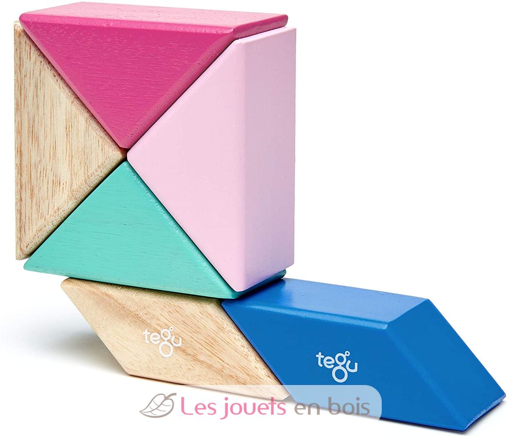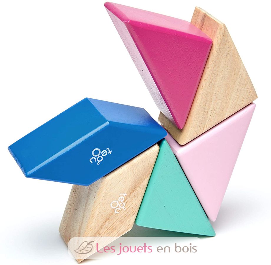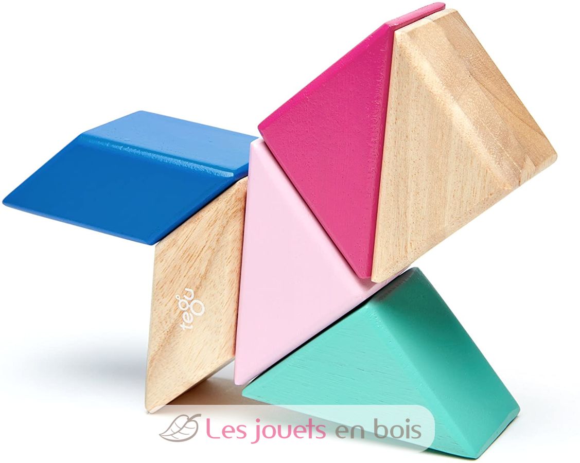 6-Stück Prism Pocket Pouch Blossom, magnetische Holzbausteine von Tegu.