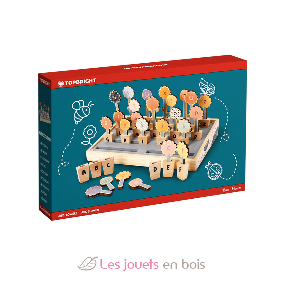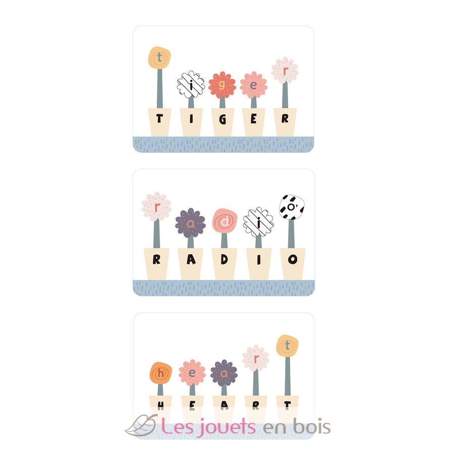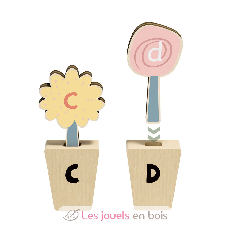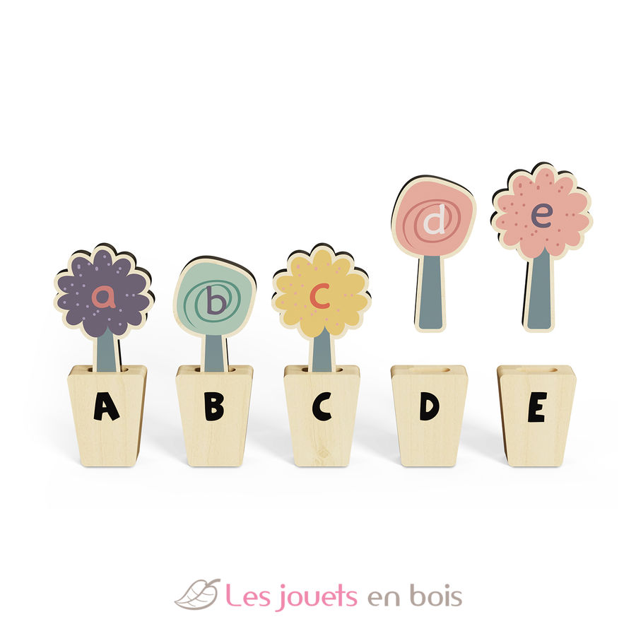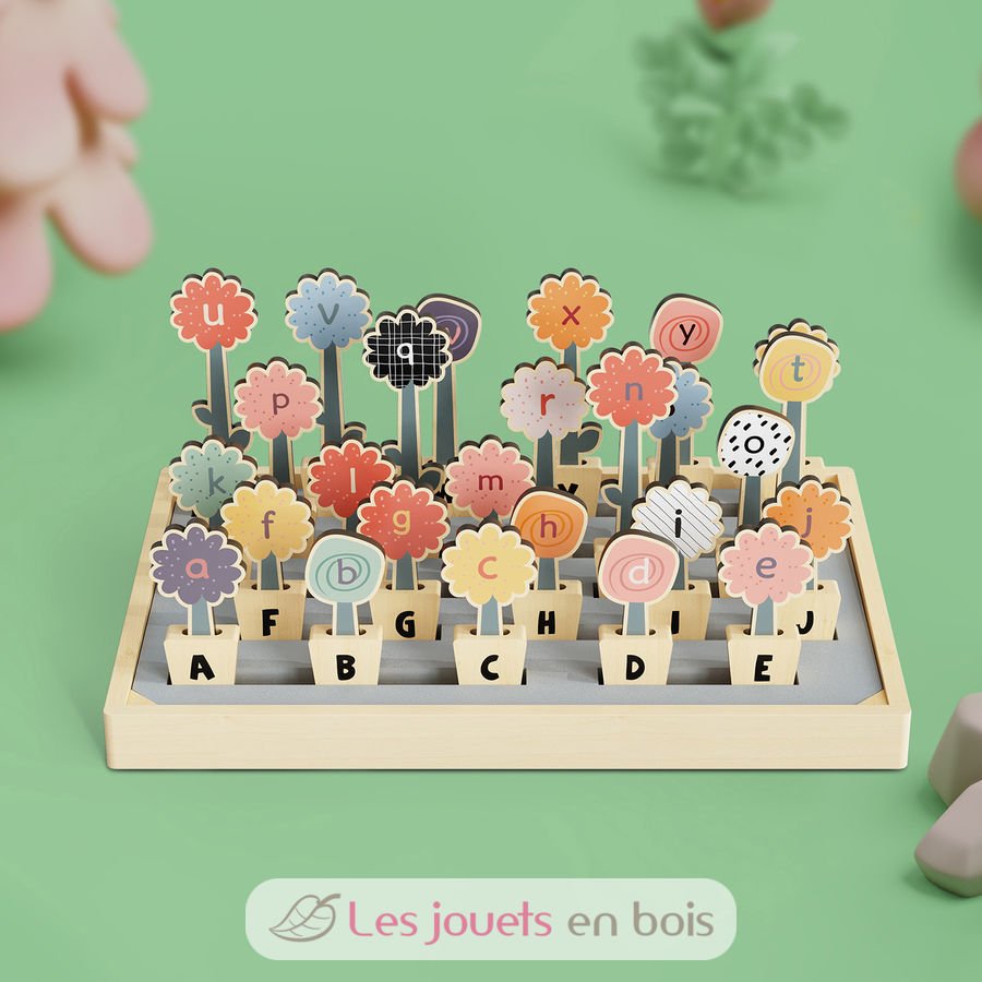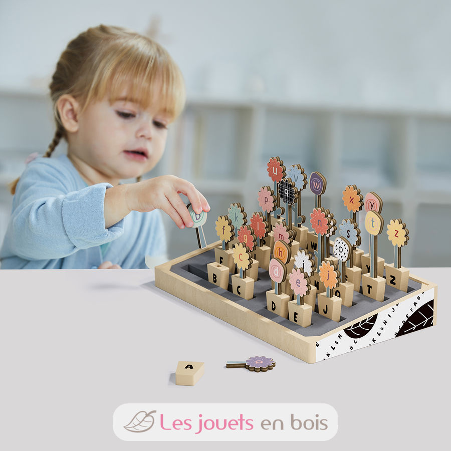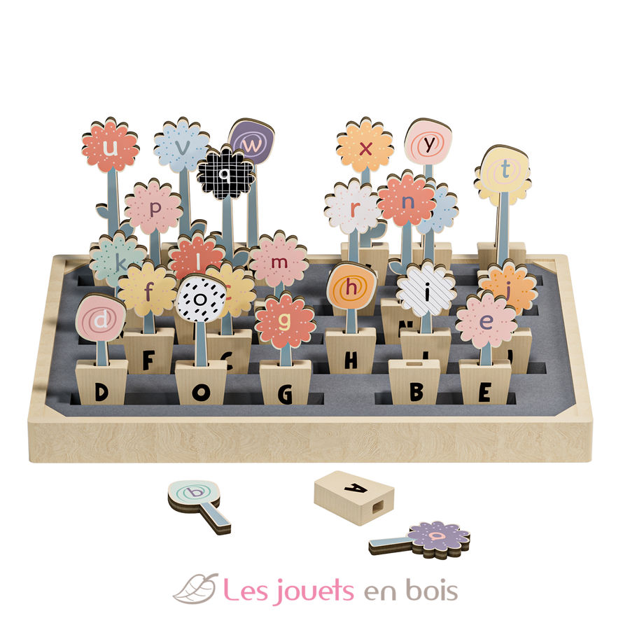 Auf in den Garten! 26 Blumentöpfe mit Großbuchstaben und 26 Blumen mit Kleinbuchstaben unterstützen Kinder beim Buchstabenlernen. Kinder stecken die zusammengehörigen Buchstaben zusammen und entdecken das Alphabet. Mit den inkludierten Wortkarten üben sie erste Worte in verschiedenen Sprachen zu buchstabieren.