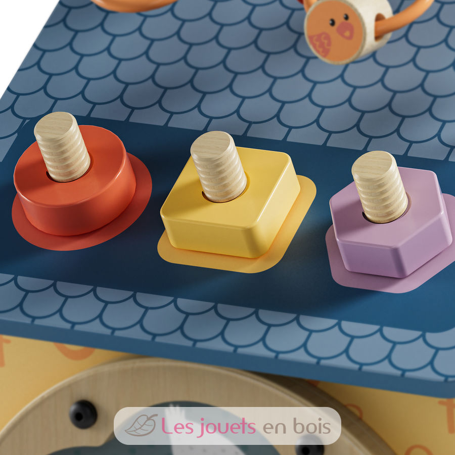 Das lustige Activity Haus vereint 12 verschiedene Spielmöglichkeiten zur spielerischen Förderung der Feinmotorik und Konzentrationsfähigkeit in einem.
