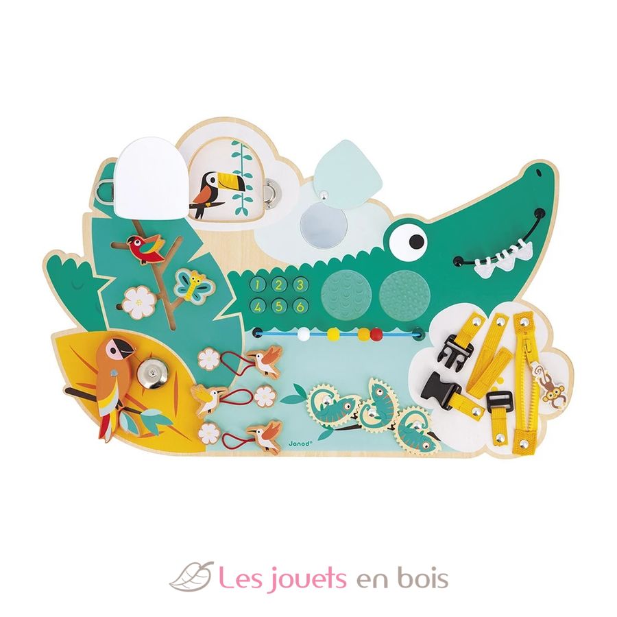 Krokodil-Arbeitsbrett zum Aufstellen oder Befestigen an der Wand. Bietet mehr als 14 unterhaltsame Lernspiele, perfekt zur Stimulation von Babys ab 18 Monaten.