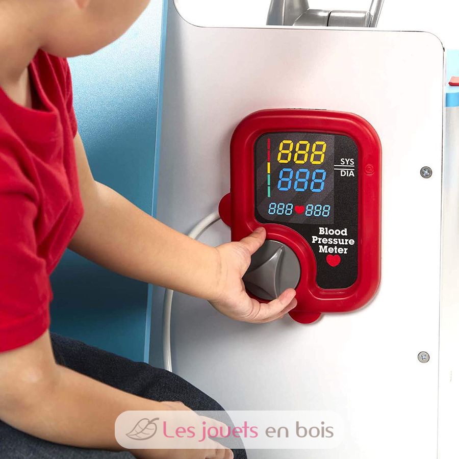 Dieser robuste, vielseitige Spielbereich aus Holz hat alles, was Kinder für Rollenspiele in der Arztpraxis brauchen! Kinder können der Patient oder der Arzt, die Empfangsdame oder die Krankenschwester sein. Es ist eine großartige Möglichkeit, Kindern die Angst vor Arztbesuchen zu nehmen und ein fürsorgliches und einfühlsames Spielen zu fördern. Der Wartebereich umfasst einen Sitz, eine Uhr und lustige, austauschbare Kunstwerke. Melden Sie sich mit einem Kreditkartenleser und einer Karte an und ab, füllen Sie eine wiederverwendbare Patientenakte aus und nehmen Sie Termine mit dem Spieltelefon aus Holz wahr. Waschen Sie sich im Waschbecken, zeigen Sie Röntgenbilder an, überwachen Sie den Blutdruck, kippen Sie die Waage, messen Sie die Größe und lesen Sie die Sehtafel. Dieser einfach zusammenzubauende Spielbereich bietet viel Stauraum (bebilderte Anleitung im Lieferumfang enthalten; Kreuzschlitzschraubendreher erforderlich). Mit einer Größe von 88.9cm x 93.98cm x 53.34cm gibt es auch viel Platz für Ihre Fantasie!