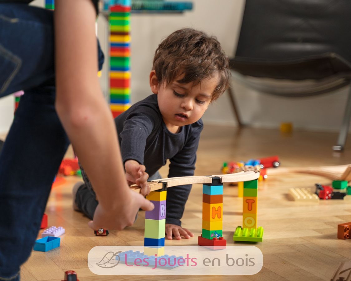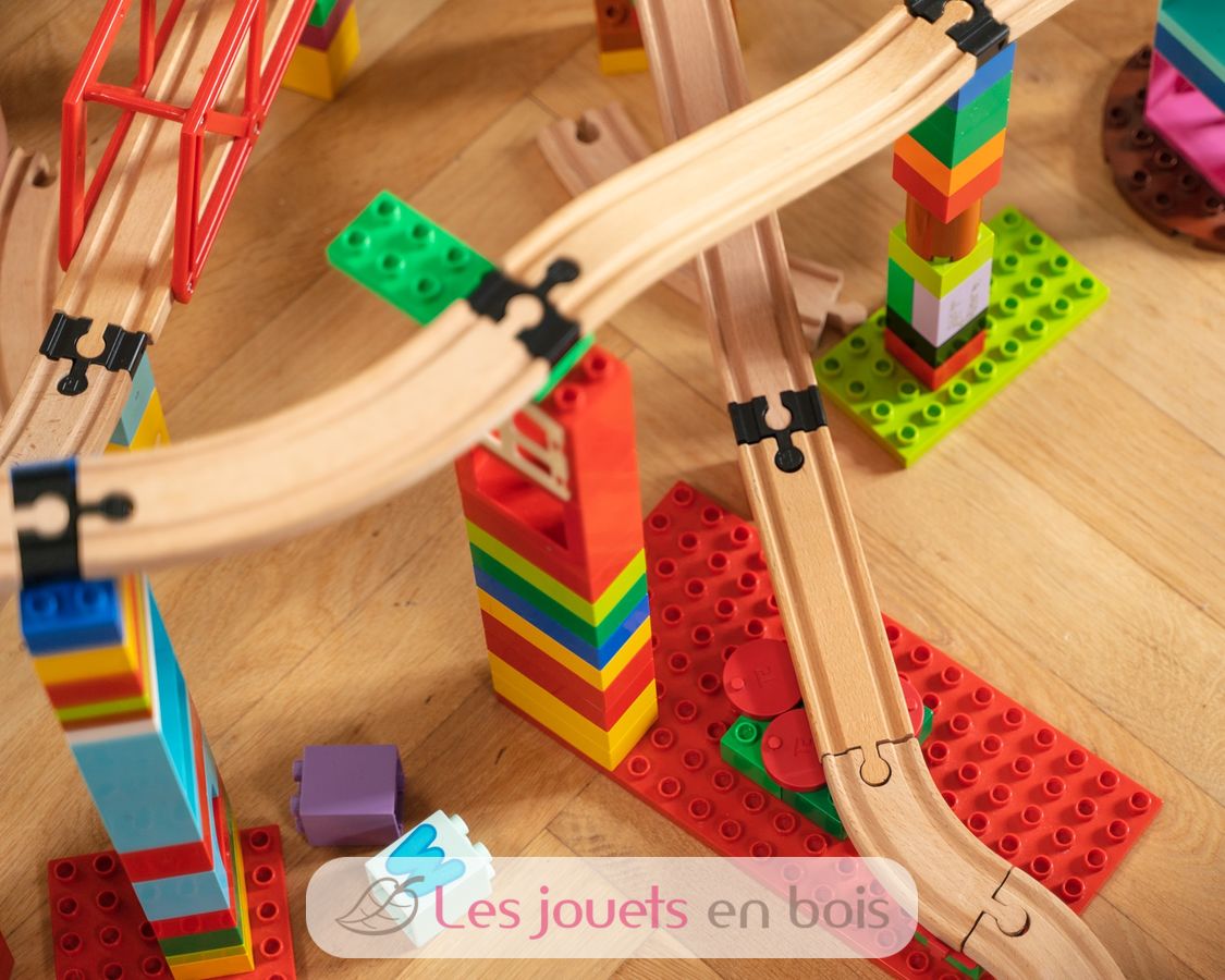 Toy2 Track Connectors schaffen völlig neue Möglichkeiten aus den bereits vorhandenen Ziegeln und hölzernen Eisenbahngleisen. Alle Gleisverbinder sind mit Duplo®, Hubelino®, Biobuddi® und anderen ähnlichen Steinen kompatibel. Alle Gleisverbinder sind mit Holzeisenbahngleisen von Brio®, Ikea®, Bigjigs®, Vilac®, Janod®, Hape® und ähnlichen Bahngleisen kompatibel.