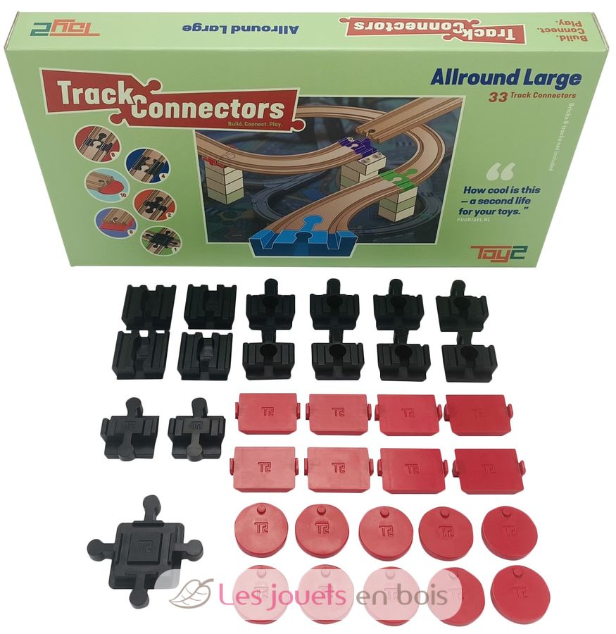 Das Allround Large enthält 33 Gleisverbinder aus Kunststoff zum Verbinden Ihrer Steine und Ihrer hölzernen Eisenbahnschienen: 8 Basisverbinder, 2 Doppellaschenverbinder, 4 Doppelblindverbinder, 10 Ankerverbinder, 8 gerade Verbinder und 1 Kreuzungsverbinder.