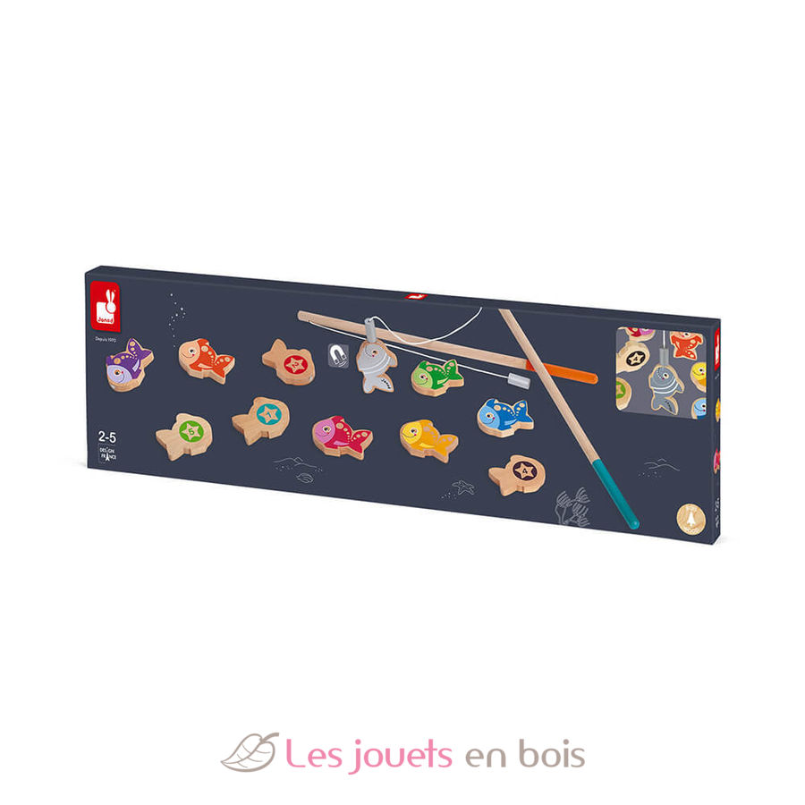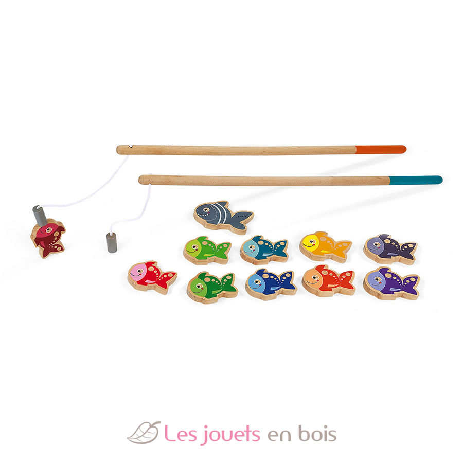 11 Fische und 2 Angelruten bis dieser sehr lustiges Spiel der Fischerei. Fish: 7x5x1cm Cannes: 47x1, 5cm Ein Holzspielzeug Janod