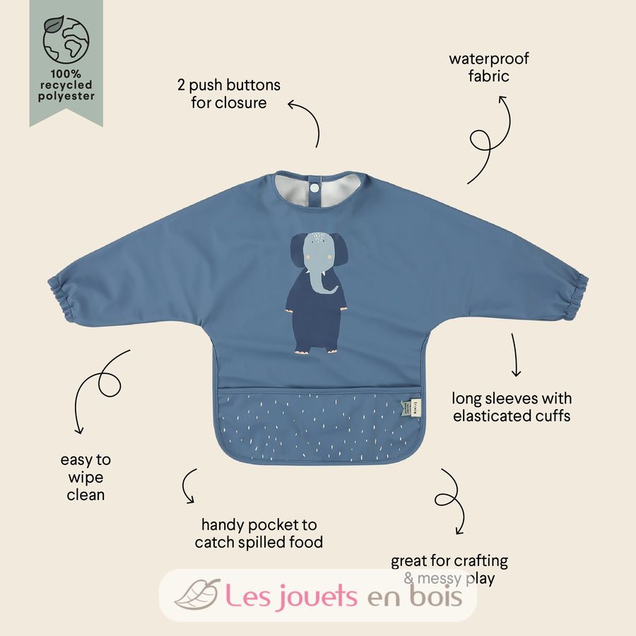 Dieses heitere Lätzchen mit praktischen langen Ärmeln hält die Kleidung des Babys sauber beim Genuss eines leckeren Getränks oder einem Happen zu essen. In der praktischen Tasche wird fast alles aufgefangen, was den Mund verfehlt hat, sodass es weniger wegzuwischen gibt.