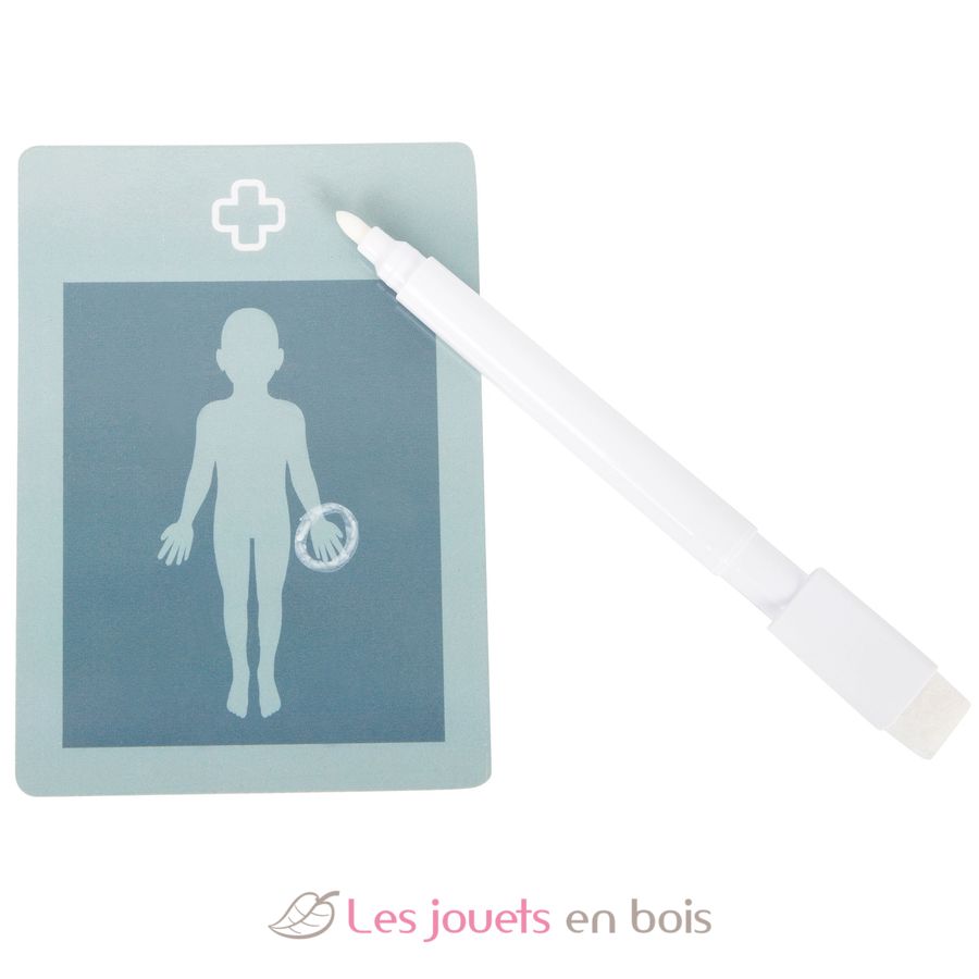Dieses vielseitige Kinder-Arzttaschen-Set bringt das Rollenspiel rund um Arzt, Patient und Pflege spielerisch auf den Punkt. Das realitätsnahe Zubehör spricht Kinder an, weckt Neugier und fördert aktives Lernen. Durch das gemeinsame Spiel mit Puppen, Kuscheltieren, Geschwistern und Freunden erleben Kinder wichtige Situationen wie Untersuchung, Fiebermessen oder Verband anlegen und bauen Vertrauen und Sprachfähigkeiten auf. Gleichzeitig schult der Umgang mit den Holzinstrumenten die motorische Entwicklung.