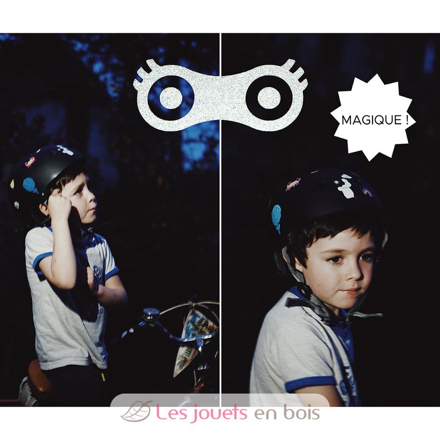 Rainette bietet eine große Auswahl an retro-reflektierenden Aufklebern, schön, farbenfroh, manchmal skurril, für jedes Alter. Personalisiere den Helm deines Kindes (und deinen) und mache ihn einzigartig! Kleben Sie diese Aufkleber auf Ihren Fahrradhelm, Roller, Fracht, Skateboard, Hoverboard, Ausrüstung der Zukunft ... Ein guter Weg für Ihr Kind, seinen Helm zu tragen und es zu tragen!