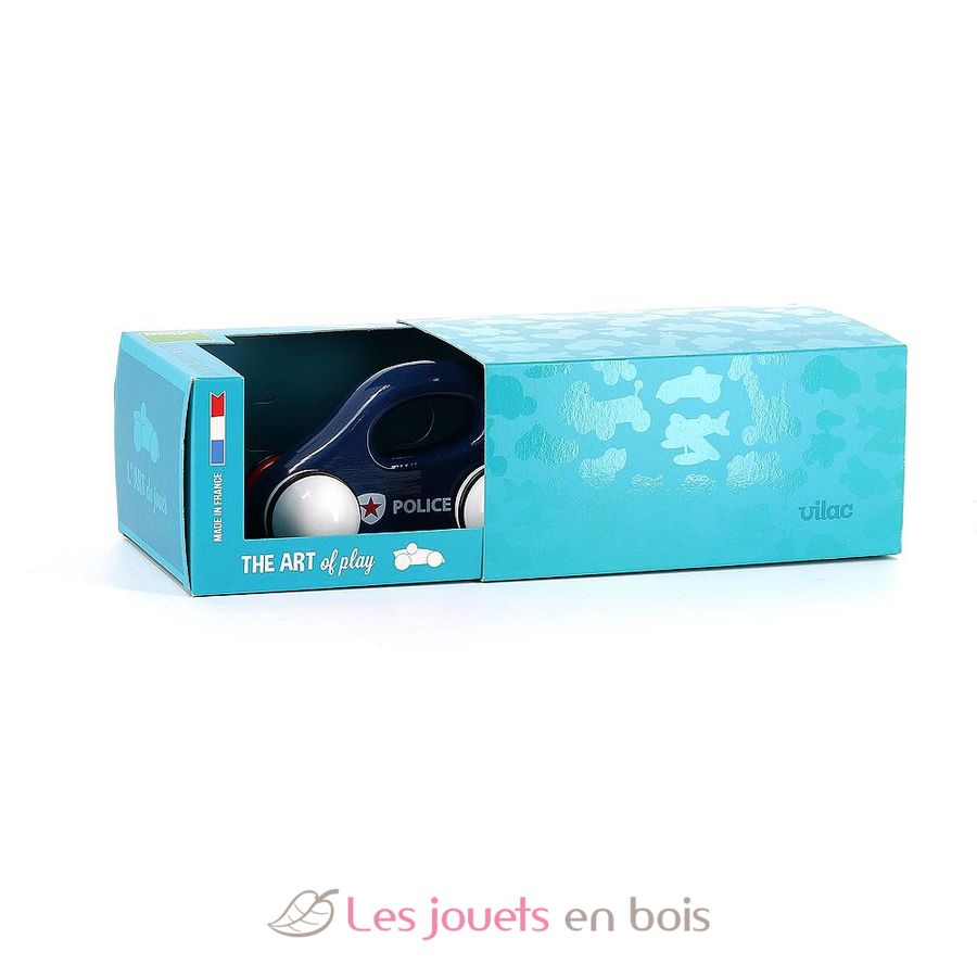 Polizeiwagen, ein in Frankreich hergestelltes Holzspielzeug der Marke Vilac.