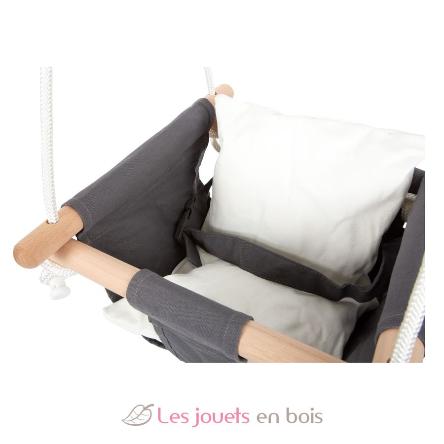Später kann das Kissen herausgenommen werden. Das schlichte, moderne Design und die dezente Farbgebung machen die Babyschaukel zum Hingucker im Kinderzimmer. Mit robusten, längenverstellbaren Seilen und Metallringen sowie Schraubkarabinern zum Aufhängen.