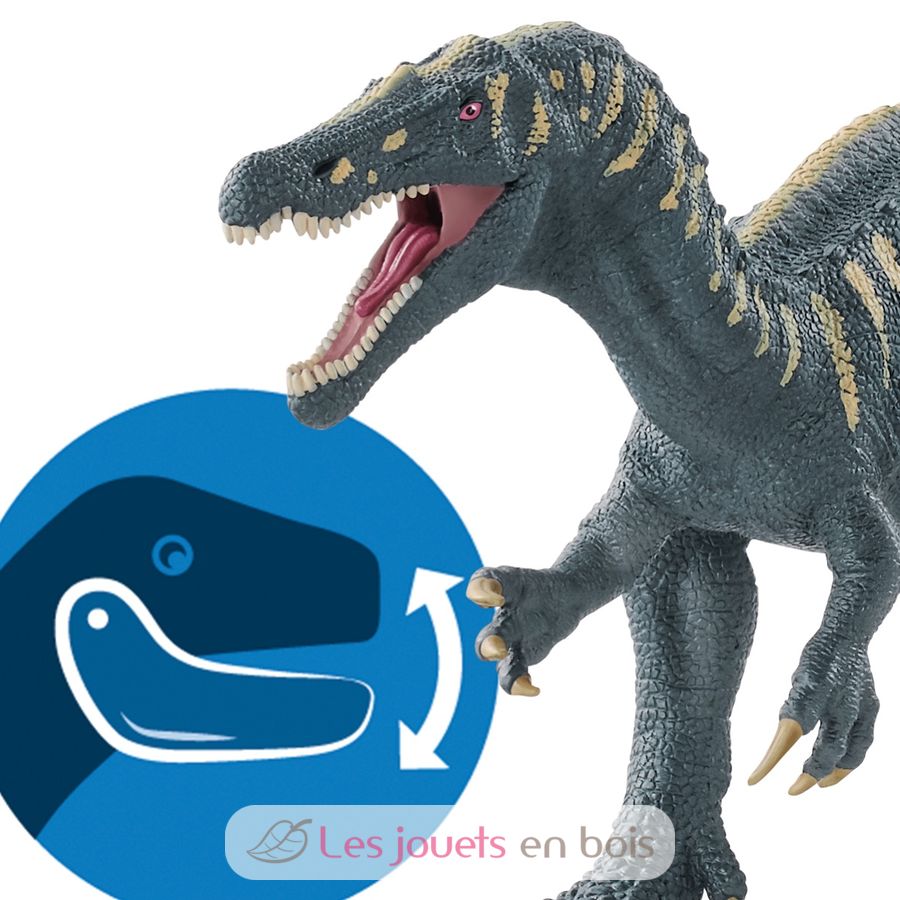 Wenn der Baryonyx seinen beweglichen Kiefer öffnet, lässt er seine gefährlichen sägeförmigen Zähne funkeln.