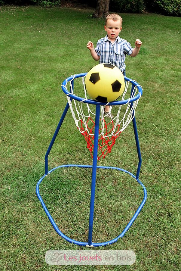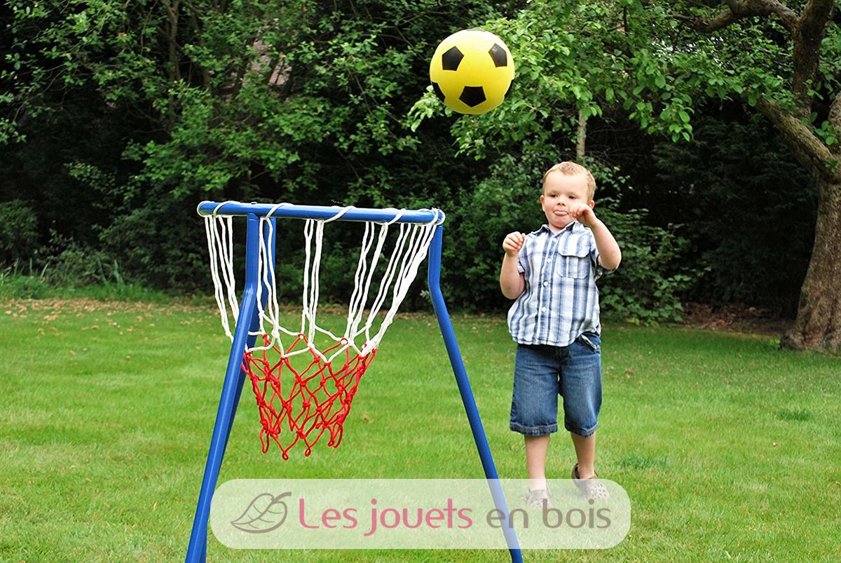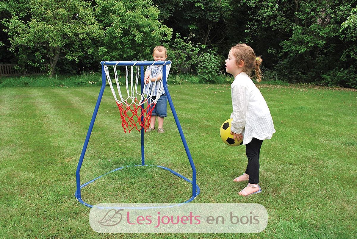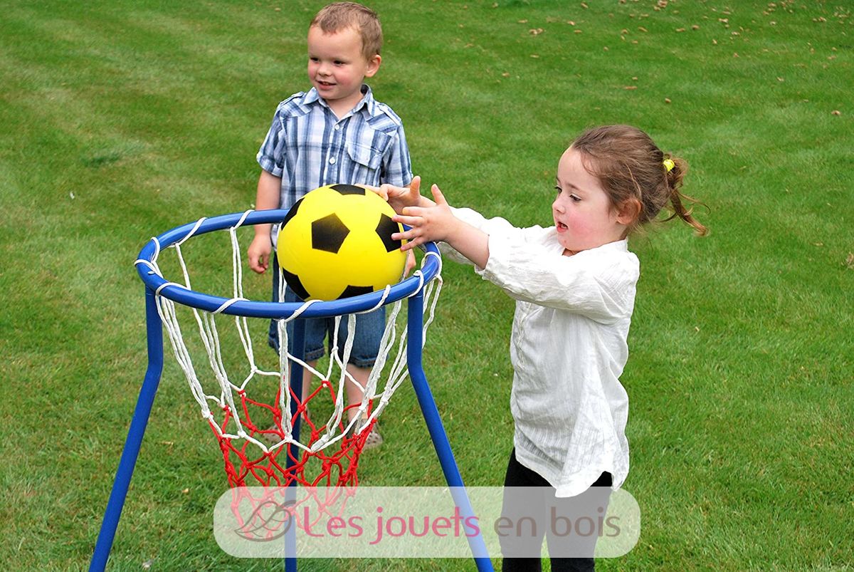 Freistehender Basketballkorb aus Stahlrohr mit Nylonseilnetz. Entworfen in einer bequemen Höhe für Kinder - oder Erwachsene mit Bewegungseinschränkungen - zur Verbesserung der Hand-Auge-Koordination und als Herausforderung und erreichbares Ziel. Wetterfest, kann also drinnen und draußen verwendet werden. Einfache Selbstmontage erforderlich. Kugel nicht enthalten.