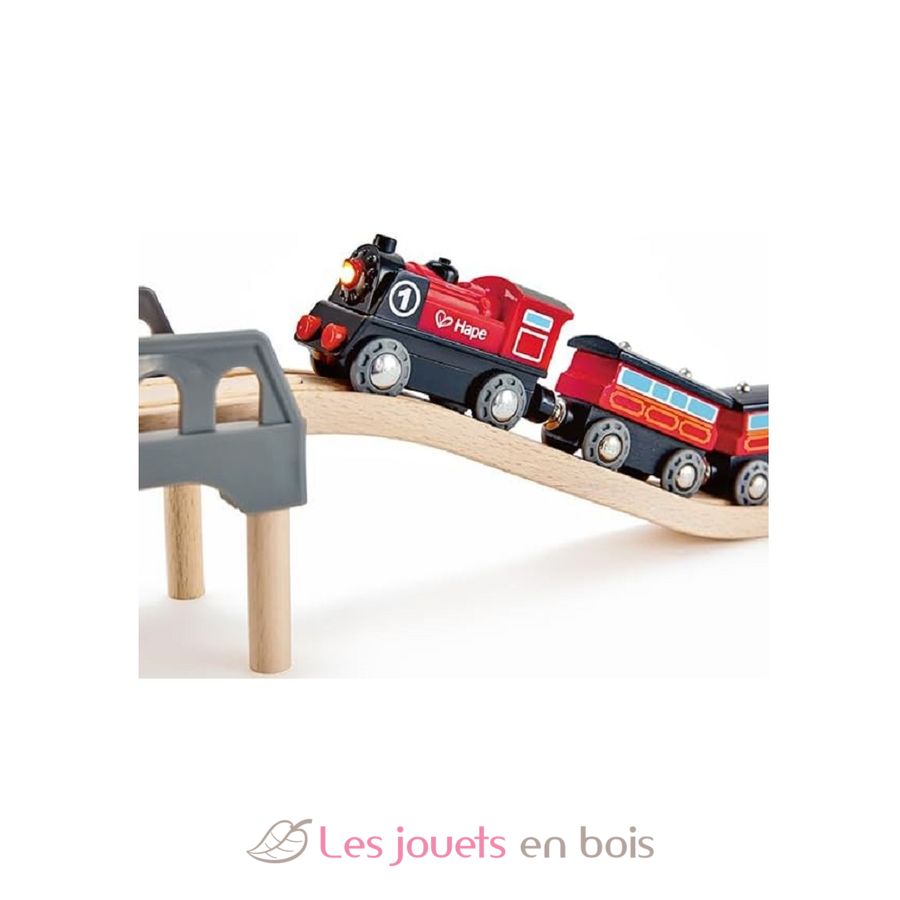 Diese kleine, klassische Dampflok fährt auf Knopfdruck los und beleuchtet ihren Weg. Durch den am Heck der Lokomotive angebrachten Magneten kann sie mit anderen Zügen und Waggons verbunden werden und diese ziehen. Du kannst nur mit der Lokomotive spielen und eine Geschichte erfinden oder mit anderen Eisenbahn-Sets weitere spannende Geschichten erleben.