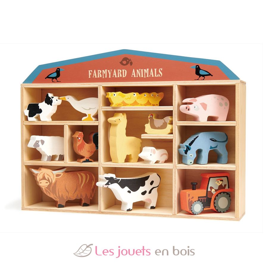 Dieses Set von Bauernhoftieren aus Holz ist ideal, um Ihrem Kleinen die verschiedenen Bauernhoftiere vorzustellen. Es enthält: ein Holzregal, einen Schäferhund, eine Gans, ein Schaf, einen Hahn, zwei Kühe, Küken, ein Alpaka, eine Henne, eine Maus, ein Schwein, einen Esel und einen Traktor.