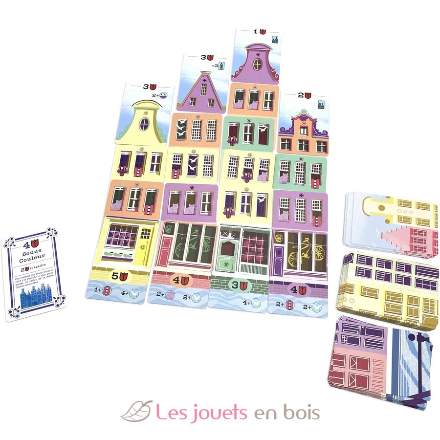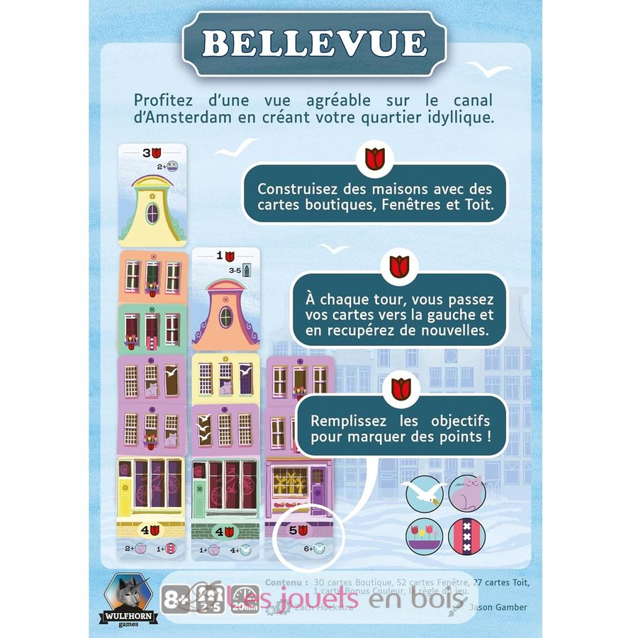 Bellevue ist ein Kartenlegespiel, bei dem Sie Ihre Straße erstellen, indem Sie am Amsterdamer Kanal typisch flämische Häuser bauen.