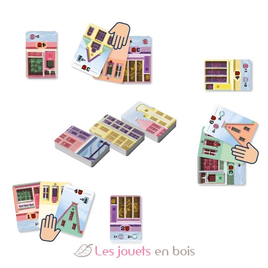 Wählen Sie die beste Karte aus Ihrer Hand zum Spielen aus, bevor Sie sie an Ihre Gegner weitergeben. Sie müssen die Ziele Ihrer Geschäfte und Dächer erreichen und dabei die Farben im Auge behalten, um die meisten Punkte zu erzielen und zu gewinnen!