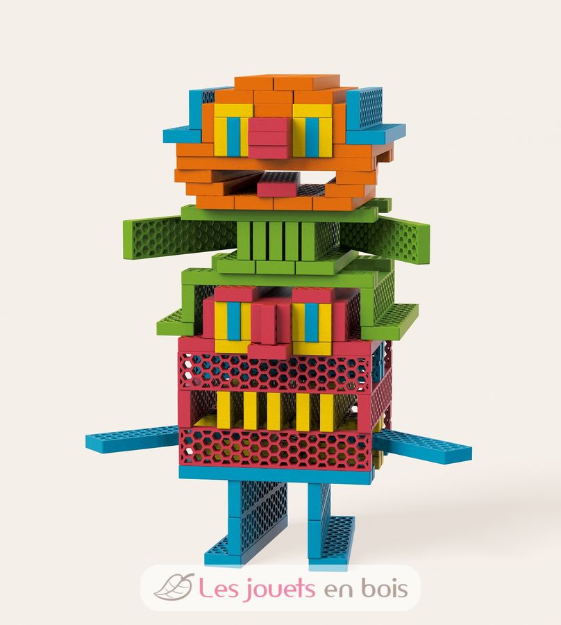 Bioblo ist ein umweltfreundliches Bauspiel aus bunten Brettern mit einer ursprünglichen Wabenstruktur. Diese in Europa (Kroatien) hergestellten Ziegel bestehen zu 60% aus PEFC-zertifiziertem Holz und zu 40% aus recyceltem Kunststoff aus Bechern. Diese Boards sind zu 100% ökologisch, so konzipiert, dass Kinder sicher spielen können, ohne schädliche Komponenten.