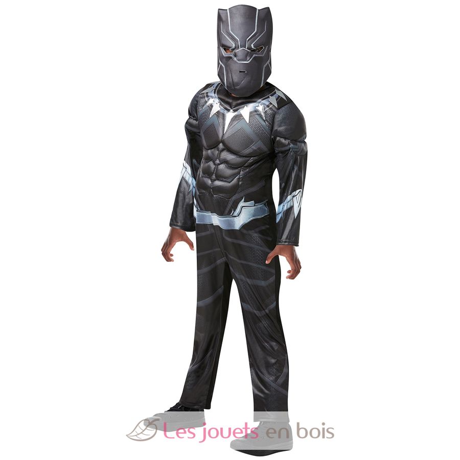 Black Panther Kostüm mit gepolsterten Muskeln, für Kinder von 5 bis 6 Jahren (ca. 110-116 cm groß).
