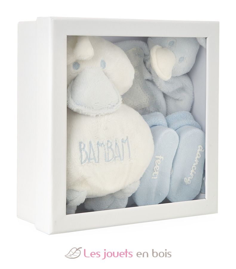 Dieser Kasten "Blau Duck" BamBam ist ein sehr schönes Geburtstagsgeschenk. Die Box bietet: - Ein blau Schmusetuch, Ente-förmige; - Ein Plüsch Rassel "Ente" weiß und blau; - Ein Paar Socken blau mit der Aufschrift "Tanzbein" für Kinder von der Geburt bis drei Monate (85% Baumwolle, 12,9% und 2,1% Polyester Elastan); - Ein Beißring "Krone" (und sie in den Kühlschrank, wenn Baby-macht die Zähne). Dieser Satz kommt in einem hübschen weißen Karton mit einem großen Fenster auf den Deckel, die Produkte und leicht, sie zu sehen präsentiert. Schmusetuch, Plüsch Rassel und Socken sind in der Maschine waschbar. Blau Geschenk-Box von BamBam Marke. Artikelnummer BB50094
