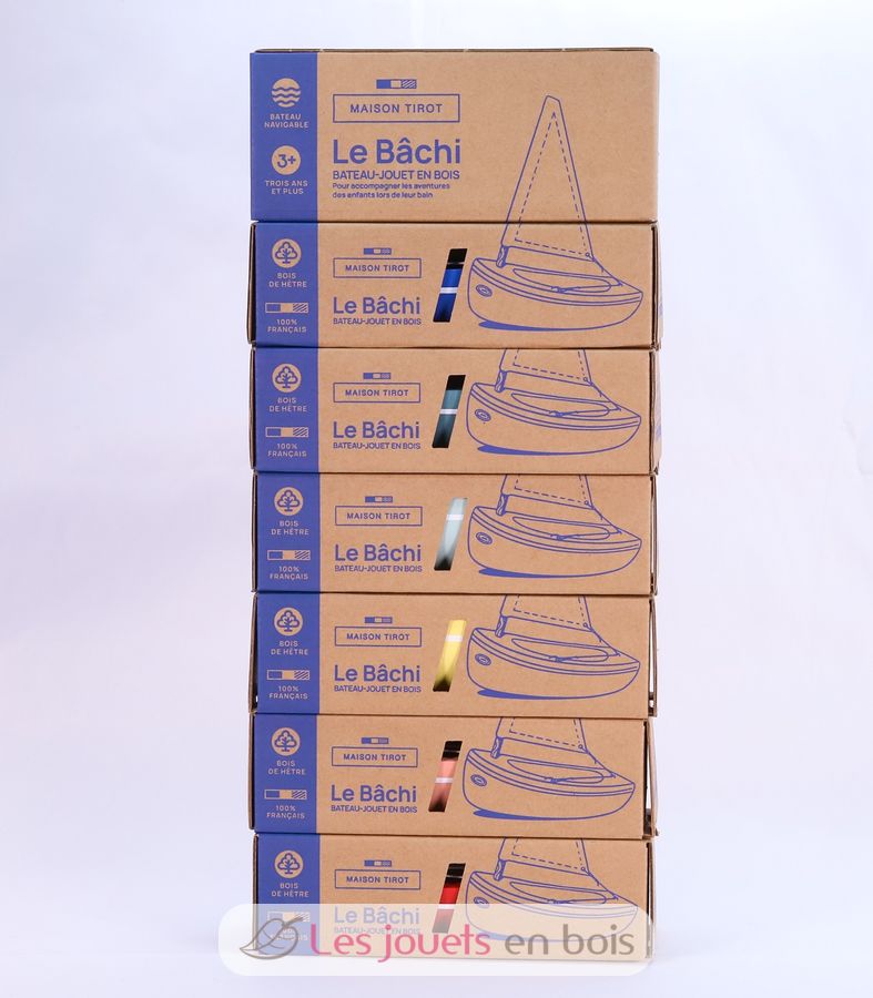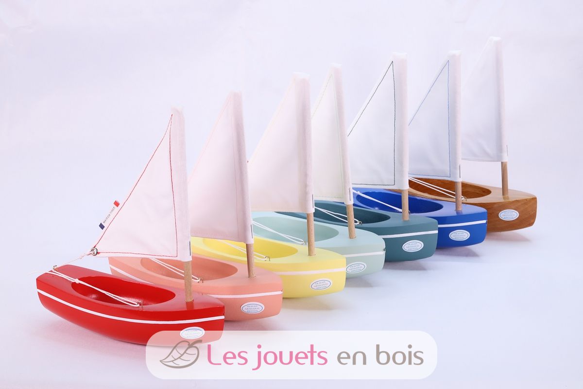 Dieses aus massivem Buchenholz aus bretonischen Wäldern handgefertigte Boot ist mit einem Bermuda-Baumwollsegel ausgestattet. Seine Form ist inspiriert von Thunfischbooten, Fischerbooten vergangener Zeiten, mit denen unsere Ältesten fischten ... Ein Bade- und Strandspielzeug für die Kleinen.