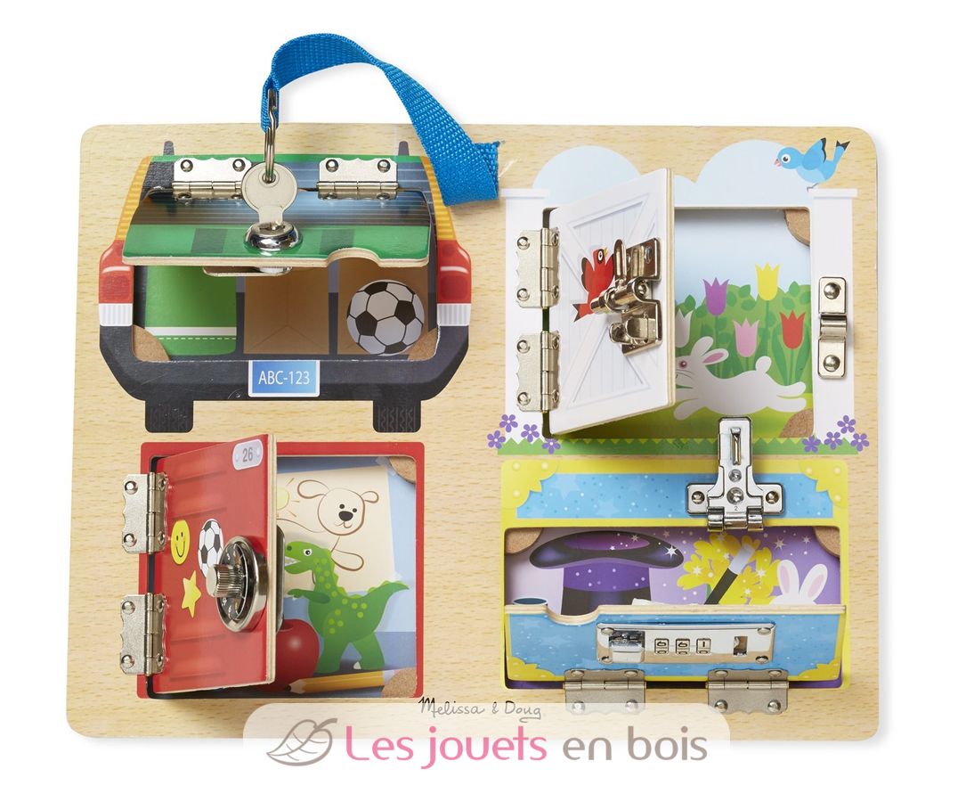 Brett mit Schlössern und Riegeln der Marke Melissa & Doug, ref 19540.