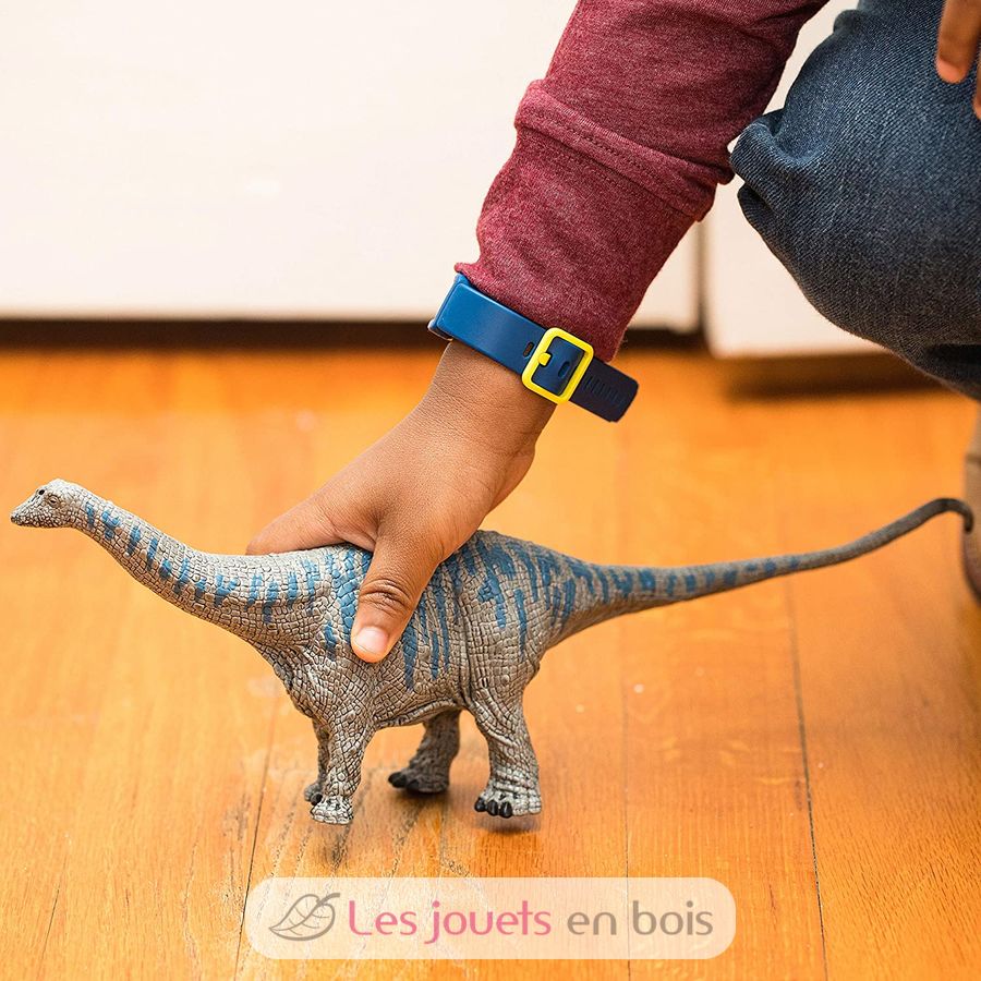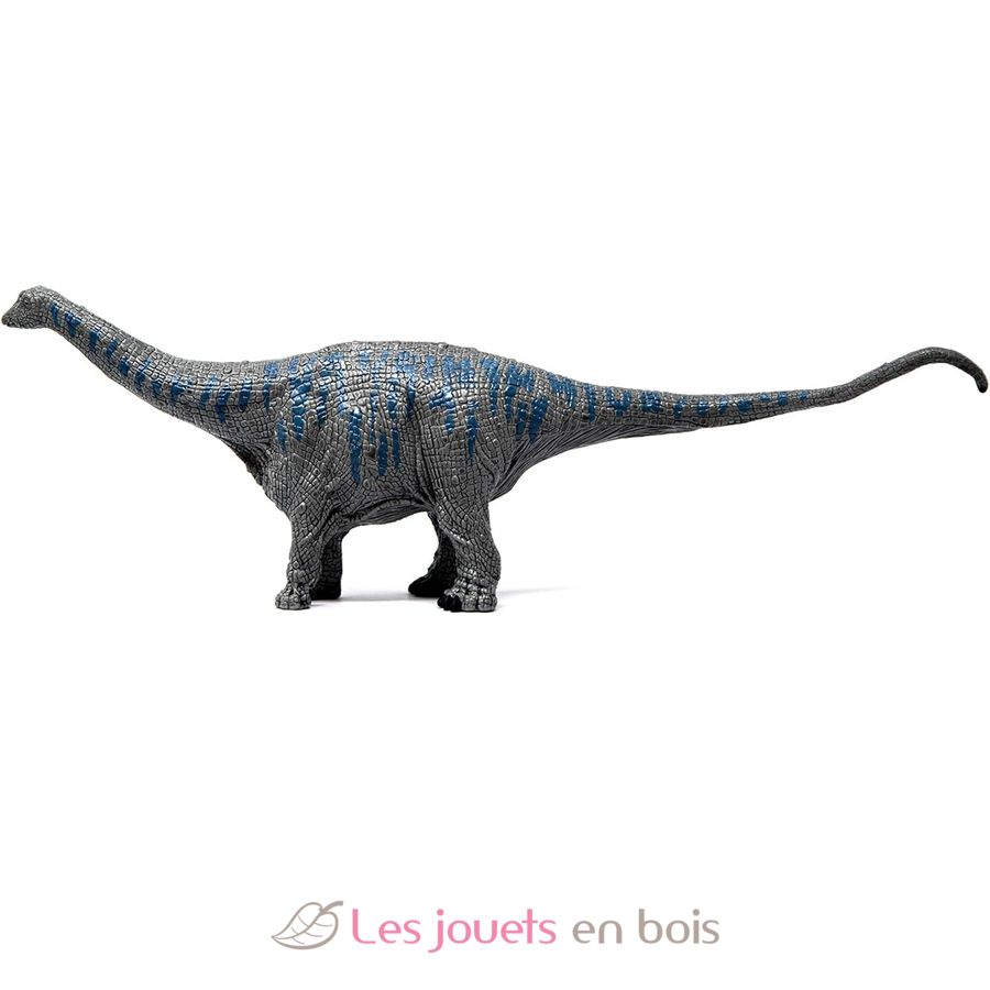 Der Brontosaurus hat einen langen Schwanz, einen massiven Körper und einen schlanken Hals. Der Dinosaurier wog rund 15 Tonnen und maß innerhalb von 22 Metern. Bisher wurde ein Brontosaurus-Skelett gefunden, aber kein Schädel. Es ist jedoch wahrscheinlich, dass sein Kopf klein war, wie der des Apatosaurus. Der Name Brontosaurus bedeutet "Donnereidechse". Forscher glaubten einmal, dass der Dinosaurier seinen Schwanz wie eine Peitsche schnappte.
