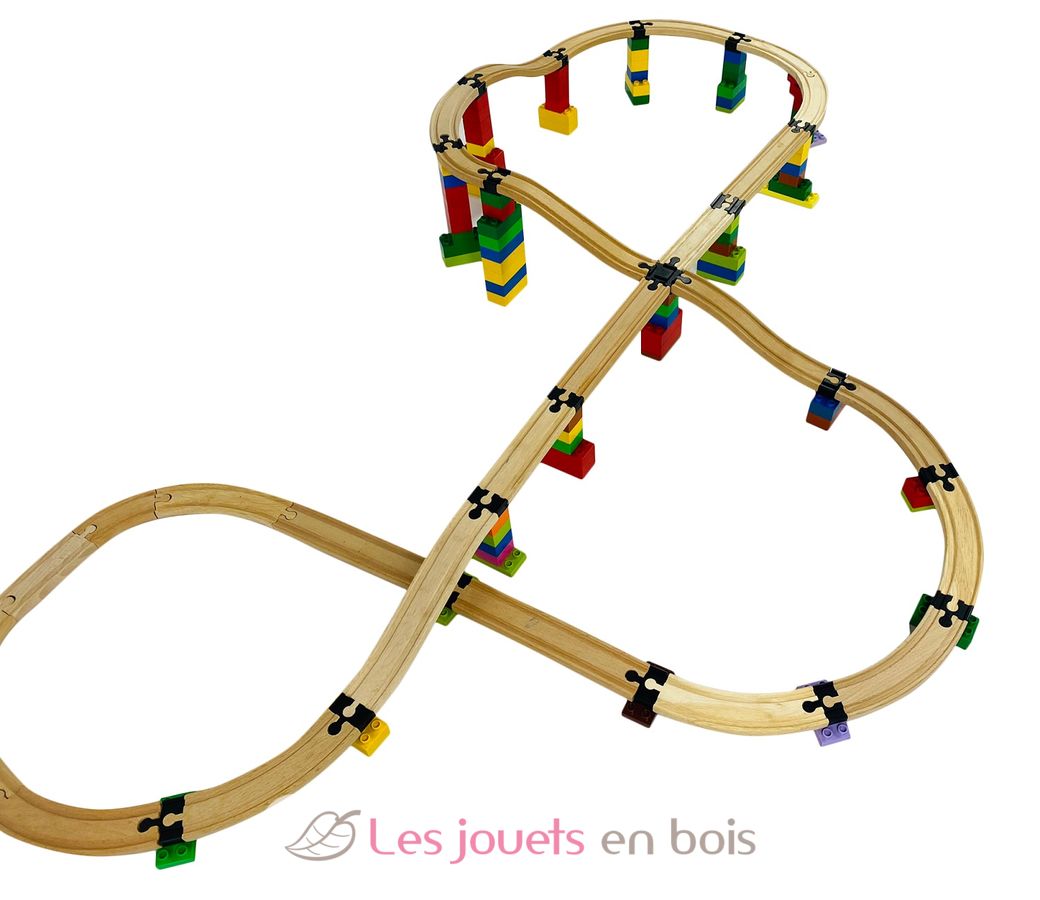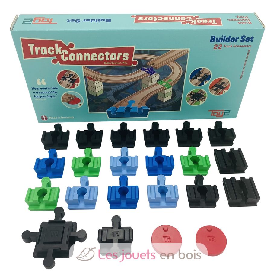 Toy2 Track Connectors schaffen völlig neue Möglichkeiten aus den bereits vorhandenen Ziegeln und hölzernen Eisenbahngleisen. Alle Gleisverbinder sind mit Duplo®, Hubelino®, Biobuddi® und anderen ähnlichen Steinen kompatibel. Alle Gleisverbinder sind mit Holzeisenbahngleisen von Brio®, Ikea®, Bigjigs®, Vilac®, Janod®, Hape® und ähnlichen Bahngleisen kompatibel.