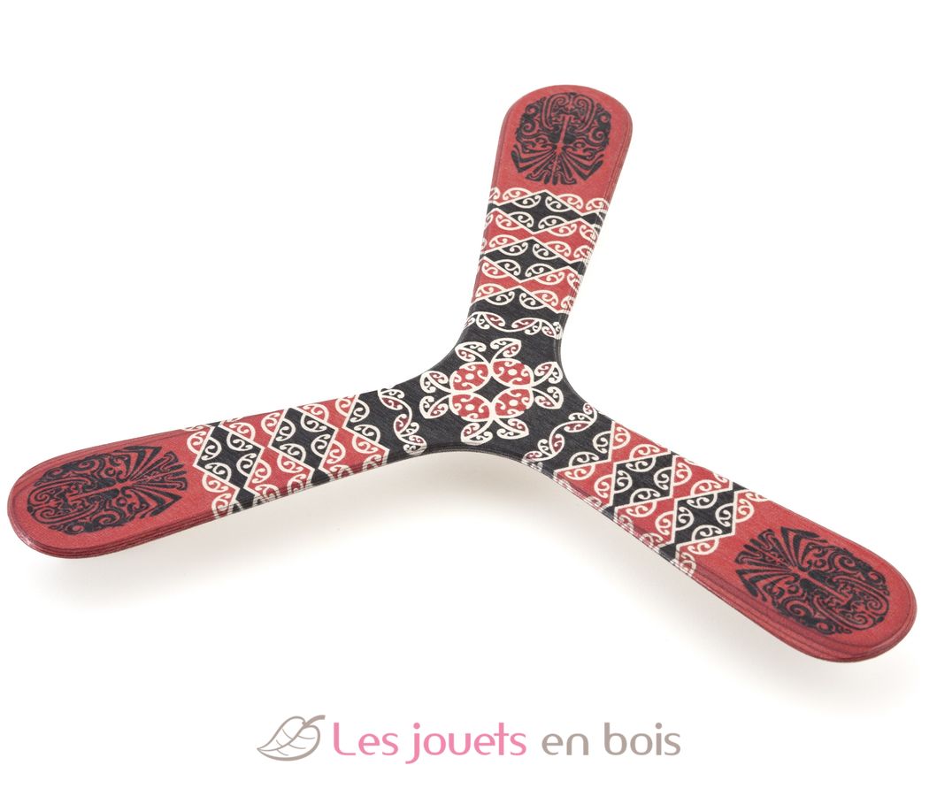 Dieser Maori Bumerang ist ein ausgezeichneter Kinderbumerang für Anfänger. Er hat seinen Namen aufgrund der aufgedruckten Maori-Symbole erhalten. Der Maori Bumerang erfordert keinen starken Wurfarm, ist bei der Rückkehr leicht zu fangen und fliegt am besten bei leichtem Wind. Egal ob als Geschenk oder Trainingsbumerang: Der Maori ist der richtige Bumerang. Seine Form und Flügelspannweite von 24 cm ermöglichen es diesem Bumerang, in einer Entfernung von etwa 20 Metern zu fliegen.