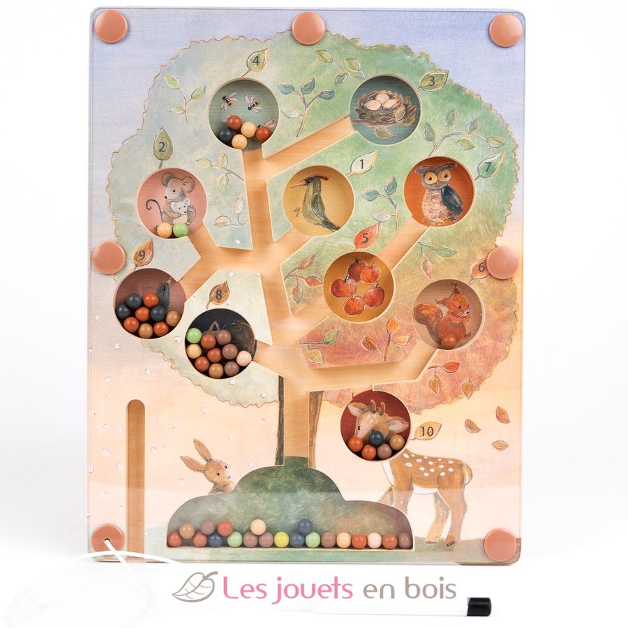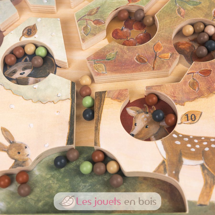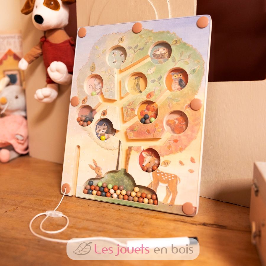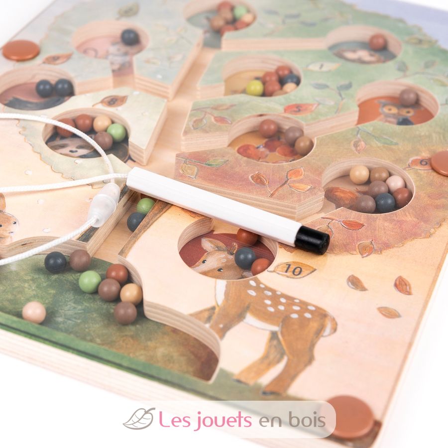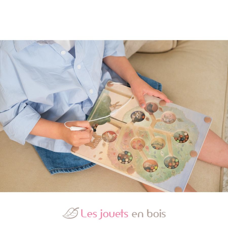 Mit dem Magnetstift führen Kinder die bunten Kugeln in die entsprechenden Räume, in denen sich jeweils ein anderer Waldfreund befindet. Eine spielerische Möglichkeit, Feinmotorik, Farberkennung, Hand-Auge-Koordination und Konzentration zu entwickeln.