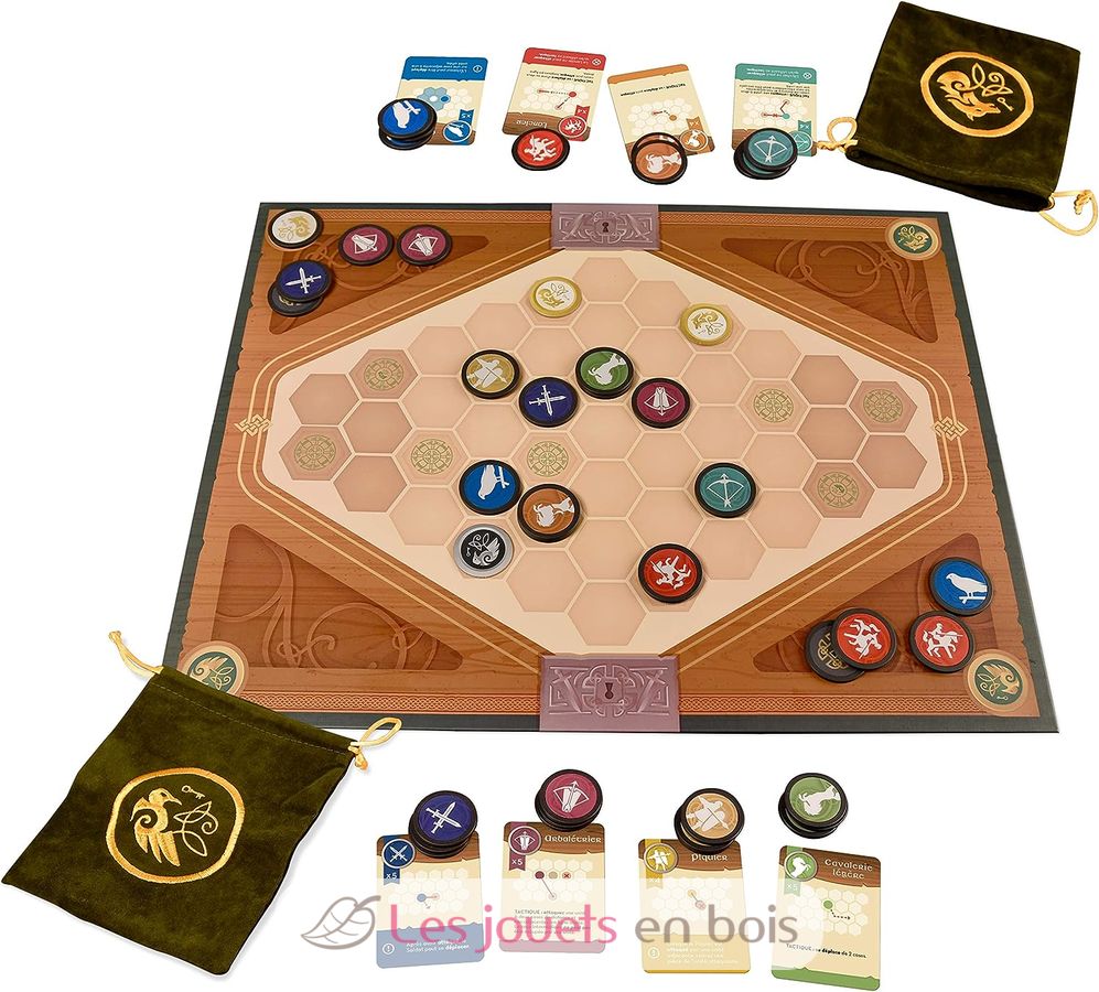 In diesem Strategiespiel führt jeder Spieler eine Armee aus 4 Einheiten an, jede mit einer einzigartigen Kampftaktik. In jeder Runde ziehen die Spieler drei Figuren aus ihrem Beutel, die diese Einheiten repräsentieren. Anschließend müssen sie die beste Strategie für ihren Einsatz festlegen: die Einheit einsetzen oder die bereits vorhandene verstärken, manövrieren oder sogar angreifen ... Das müssen Sie sich vorstellen plant einen Aktionsplan, um mehr Truppen zu rekrutieren, Ihre Verluste zu begrenzen und Ihre Einheiten im Feld, aber auch in Reserve zu verwalten. Der Sieg geht an den Spieler, der es als Erster schafft, sechs Gebiete zu kontrollieren.