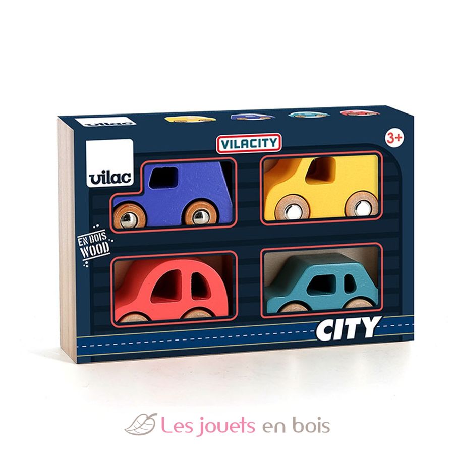 City 4-teiliges Holzautoset, Spielzeugautos aus Holz der Marke Vilac. Ref 2370.