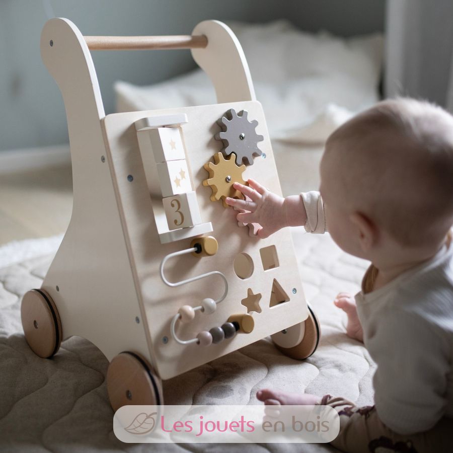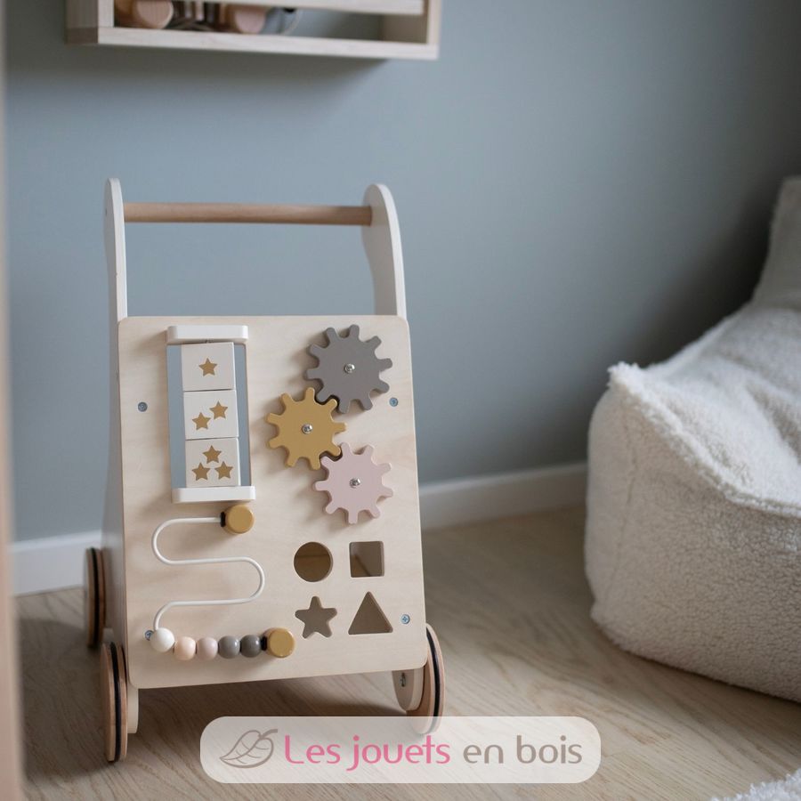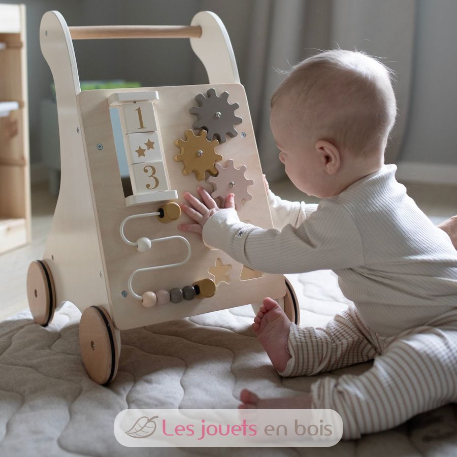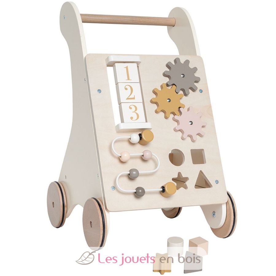 Ihr Kind kann seine Geschicklichkeit dank der angebotenen lustigen Aktivitäten testen und wird lange Zeit damit verbringen, die Zahnräder oder den Abakus zu entdecken. Dieser Rollator verfügt über Massivholzräder mit Gummikanten, um reibungslos zu rollen. Ein Fach auf der Rückseite des Wagens ermöglicht es dem Kind, sein Lieblingsspielzeug zu verstauen.