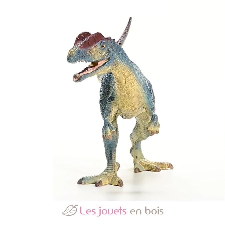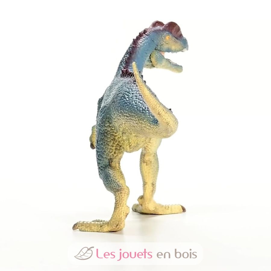 Der Dilophosaurus ist leicht an seinen beiden Knochenkämmen zu erkennen, die auf seinem Kopf hervorstehen. Leuchtend rot sind sie schon von Weitem zu sehen. Außerdem weist es einen feuerroten, gezackten Kamm auf, der sich über den Rücken bis zur Schwanzspitze erstreckt. Seine schöne Eidechsenhaut ist auf dem Rücken und den Beinen bläulich gefärbt. Wunderschön !