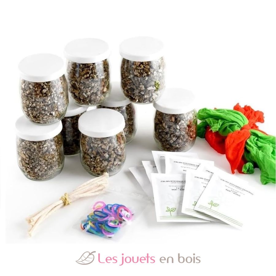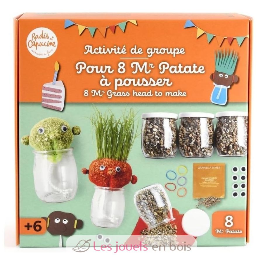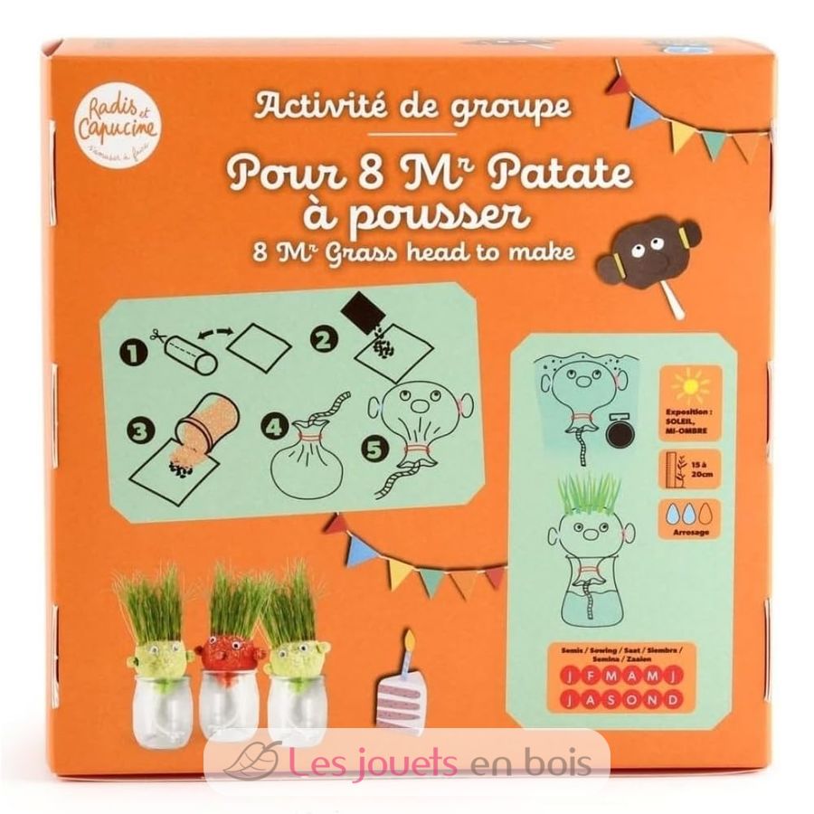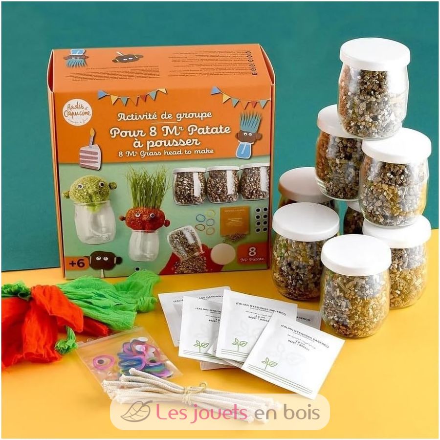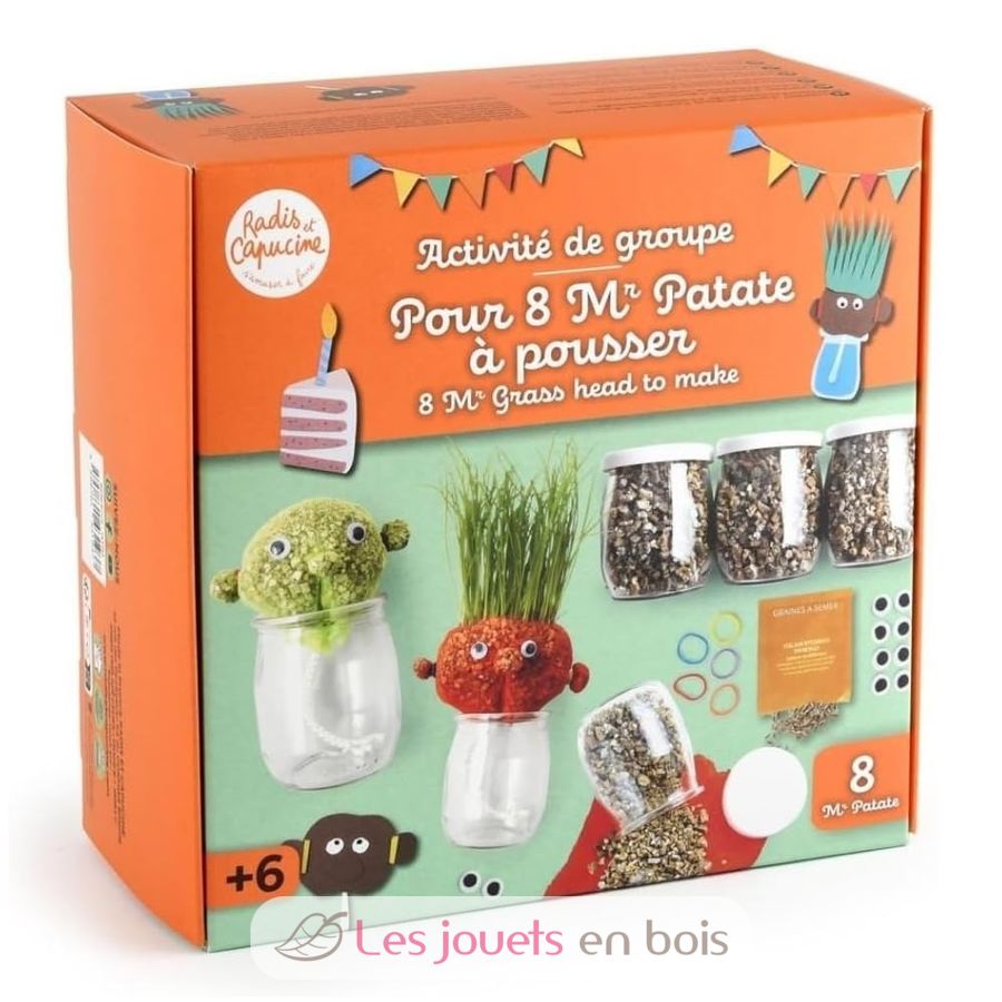 Dieses Bastelset ist ideal für einen unterhaltsamen und kreativen Workshop, ob im Klassenzimmer oder auf einer Geburtstagsparty mit Freunden (für 8 Kinder). Jedes Kind kann seinen eigenen Mr. Grass gestalten und mit nach Hause nehmen, um zu sehen, wie seine Haare Tag für Tag wachsen.