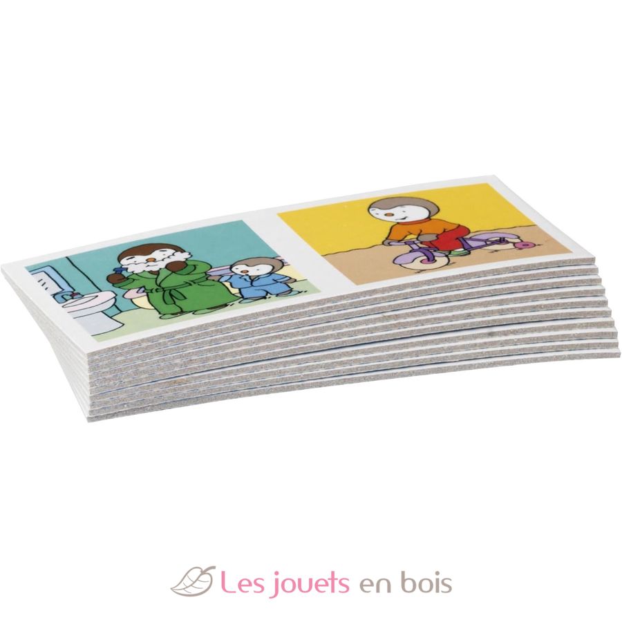 Dieses Spiel besteht aus 28 FSC-zertifizierten Holzdominosteinen, die Ihre T'choupi-Helden darstellen.
