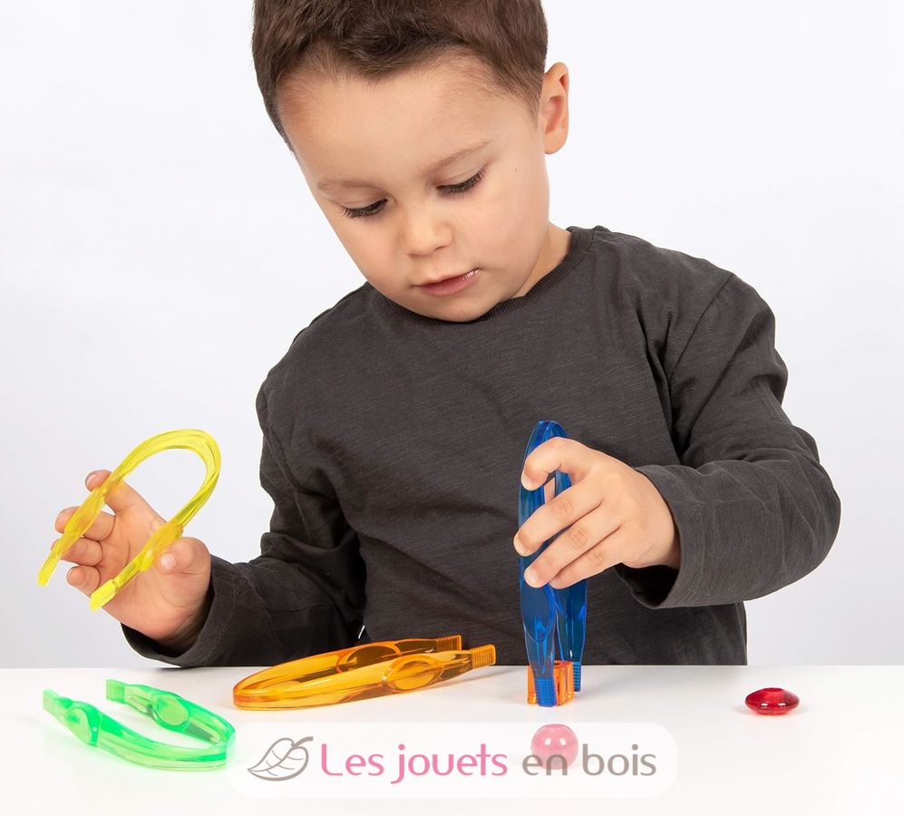 Set mit 12 Riesen-Pinzetten für Kinder ab 18 Monaten.