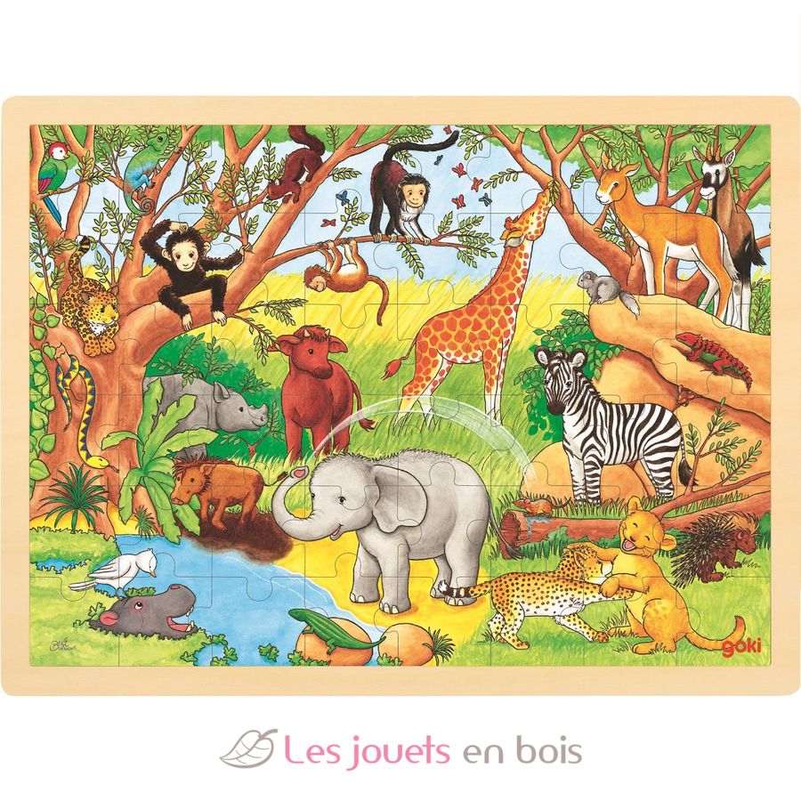 Einlegepuzzle Afrika, Großes Puzzle aus Holz der Marke Goki. Ref. 57892.