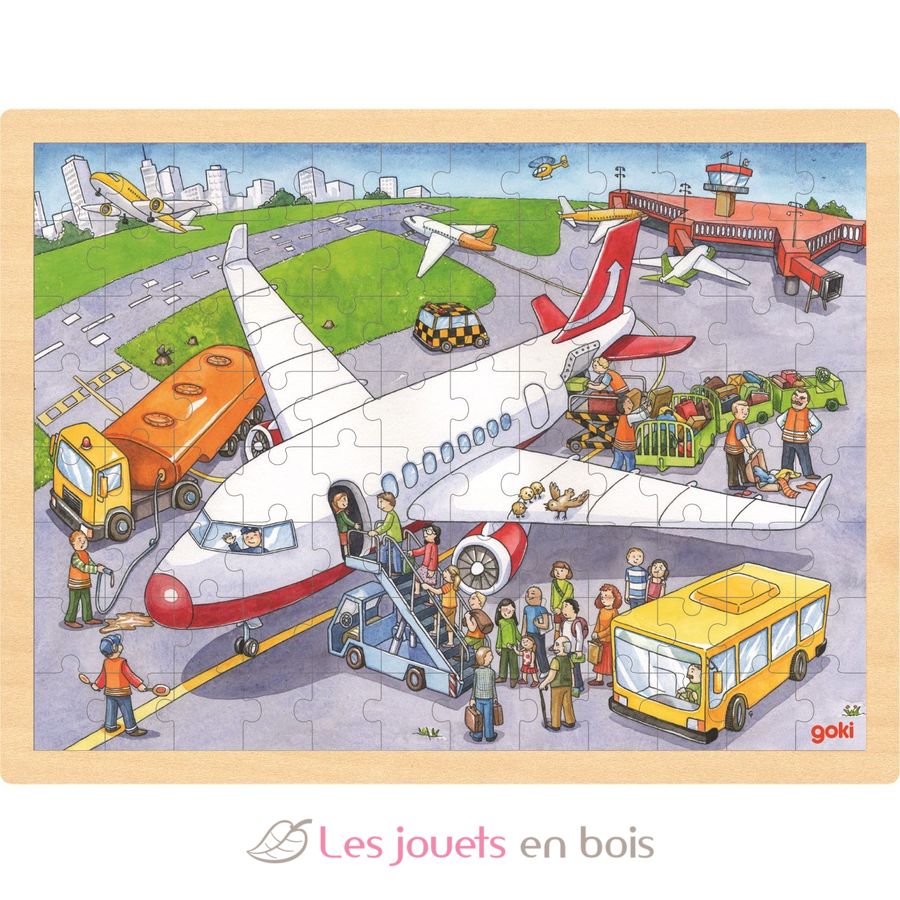 Einlegepuzzle Auf dem Flughafen, Großes Puzzle aus Holz der Marke Goki. Ref. 57544.