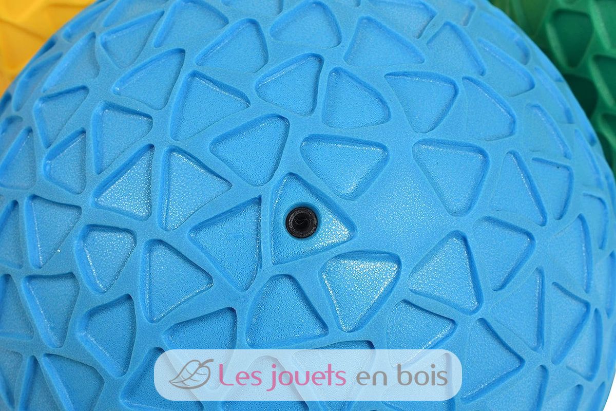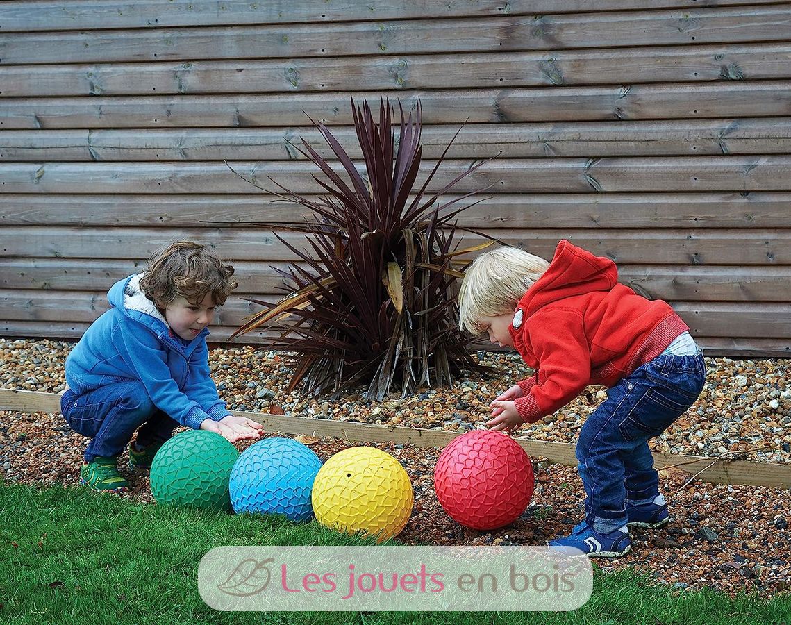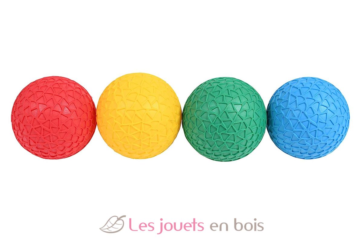 Ein Set aus vier aufblasbaren Bällen in leuchtenden Farben mit einer Oberfläche mit Wabeneffekt, die den Halt beim Fangen und Werfen unterstützt. Die Bälle sind leicht, aber robust und haben eine gute Größe für kleine Kinder, einfach zu handhaben. Verbessert das Selbstvertrauen der Kinder. Rot, grün, blau und gelb. Durchmesser 25 cm.