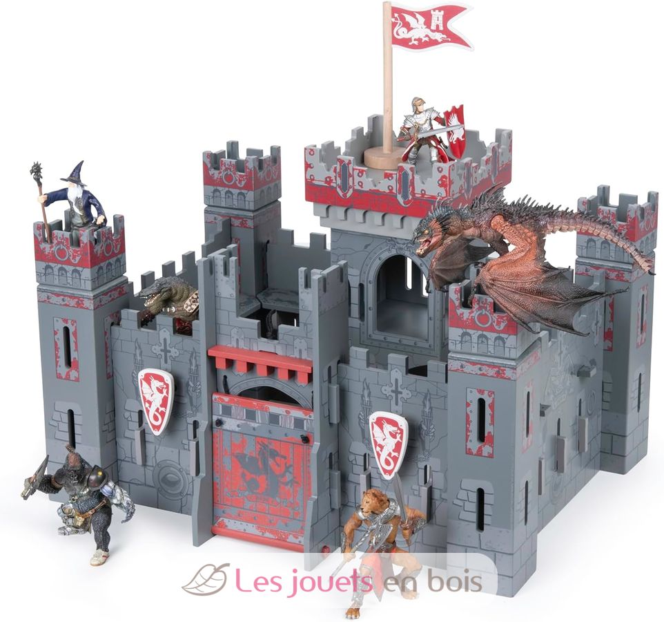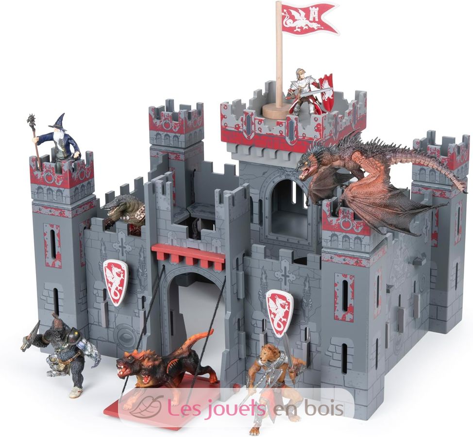 Dieses Holzschloss, damit Ihr Kind mit seinen Figuren und Figuren Tag für Tag Geschichten erfinden kann, ist ein Spielzeug der Marke PAPO.