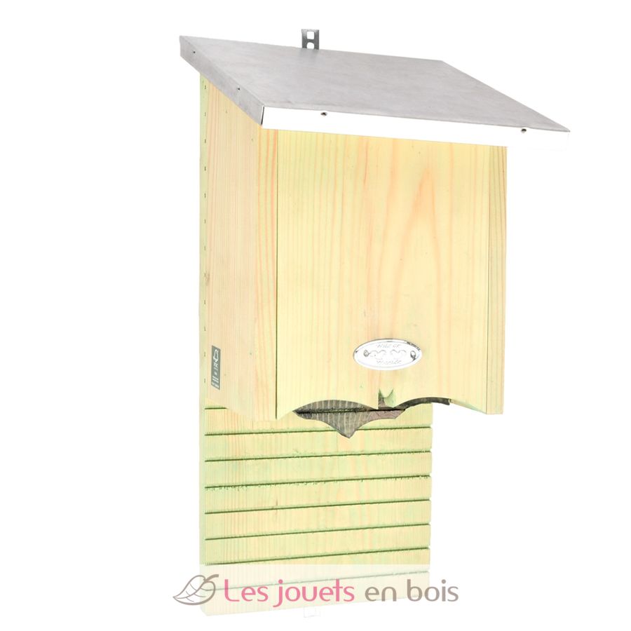 Durch die zunehmenden Verbesserungen der Wohnungsisolierung wird es für Fledermäuse immer schwieriger einen geeigneten Wohnraum zu finden. Dieser Fledermauskasten bietet mehreren Sorten von kleinen Fledermäusen einen idealen Wohnraum. Vorzugsweise an einer geschützten Stelle an die Fassade hängen.