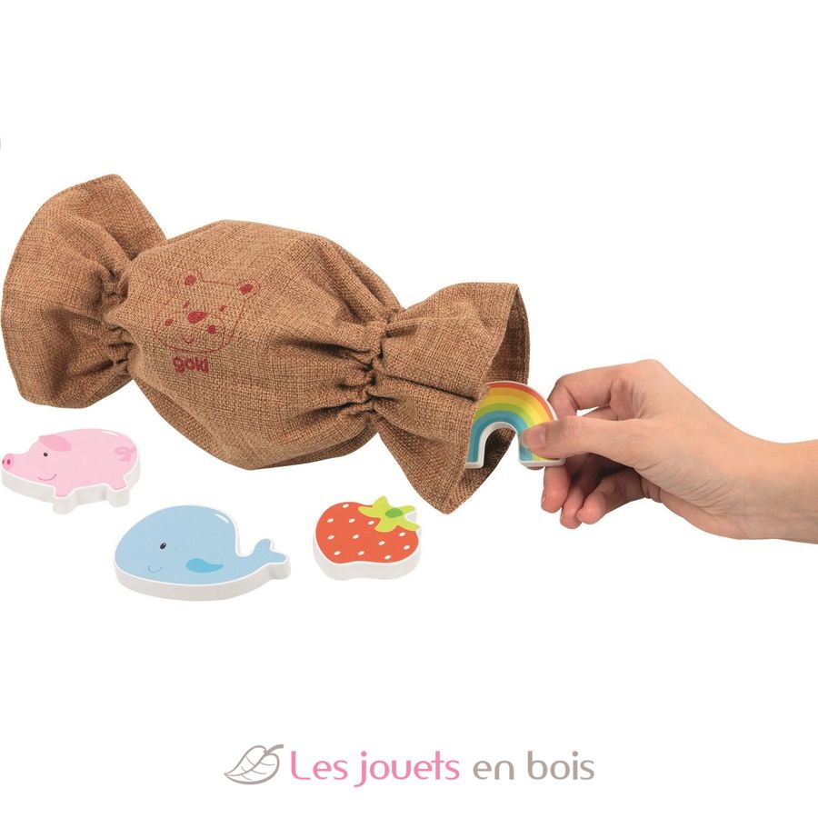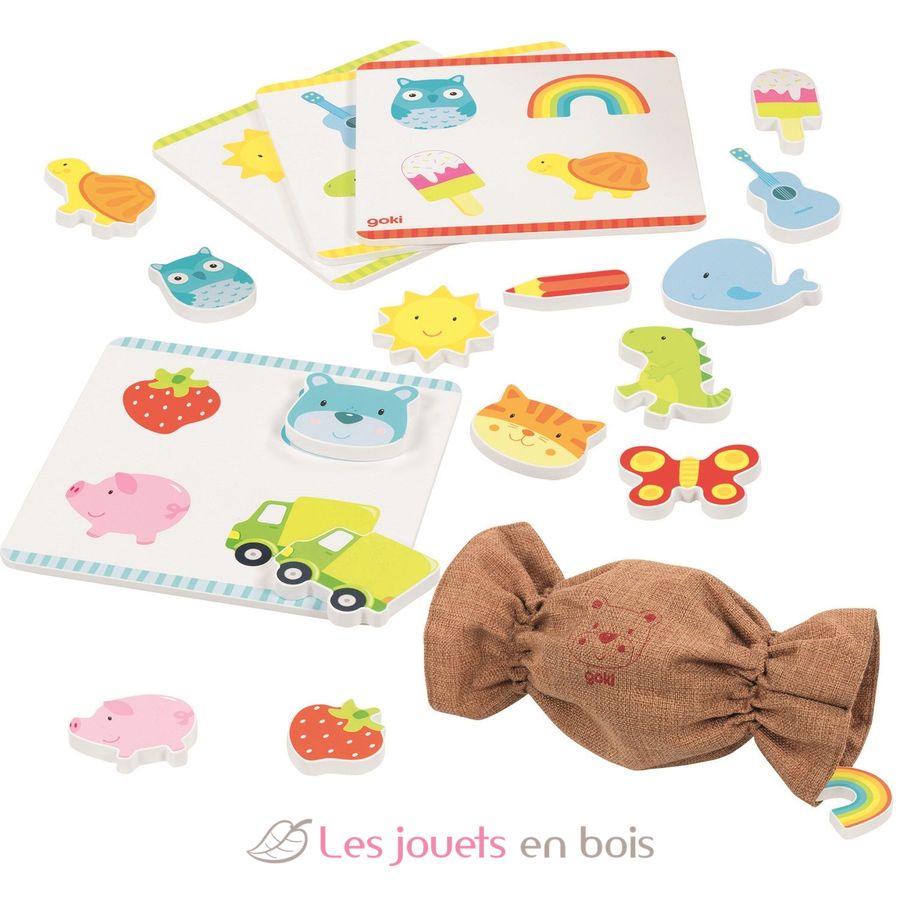 Bei diesem originellen Lottospiel geht es darum, Ihre Vorlagekarte zu vervollständigen, indem Sie die Figuren allein durch Berührung erkennen.