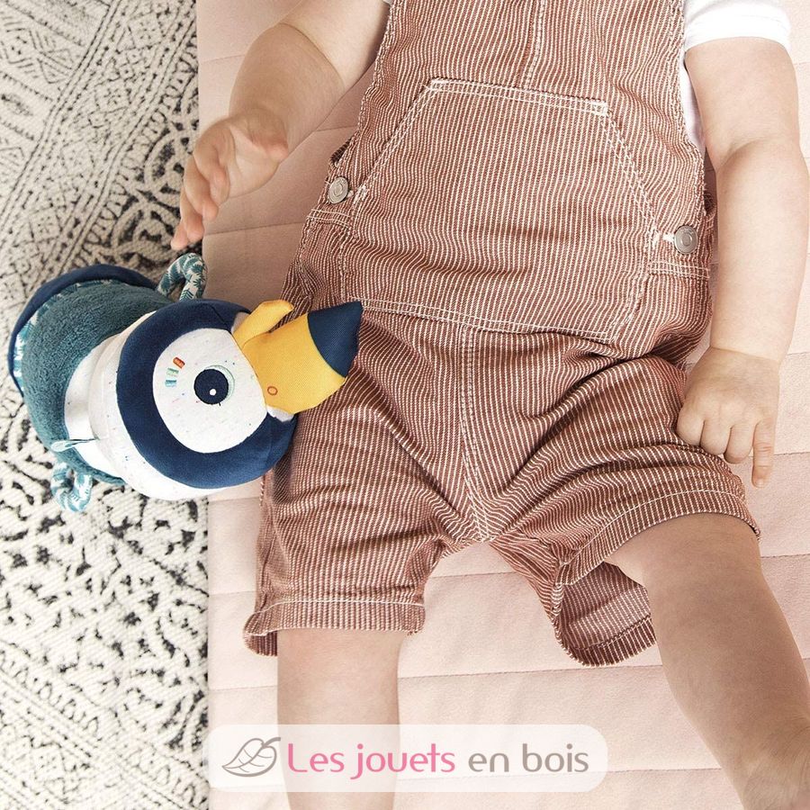 Pablo der Tukan hilft Ihrem Kind, motorische Fähigkeiten und auditive Fähigkeiten zu entwickeln. Dank der "Klettverschlüsse" können Kleinkinder alle Rollen leicht montieren und demontieren. Jedes Teil bietet einen anderen Klang in einem farbenfrohen und sehr weichen Stoff.